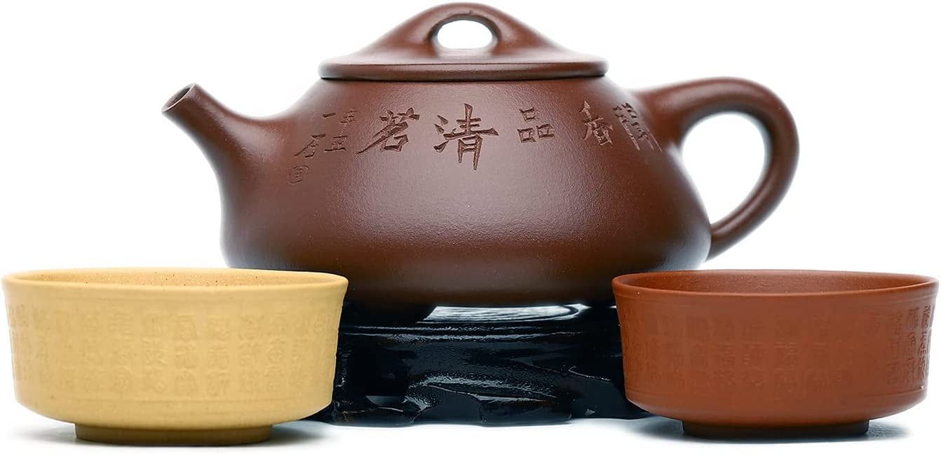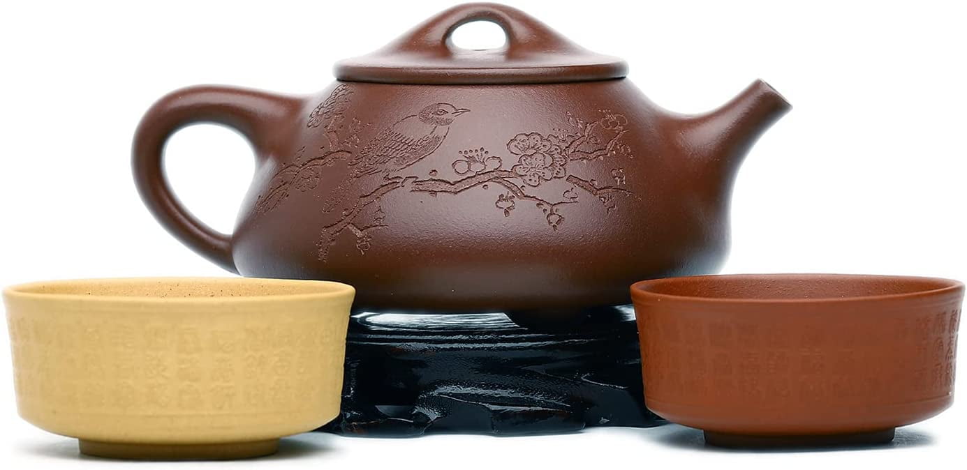 Zisha Teapot Set,Chinese Yixing Clay Handmade Filter Tea Pot 9.5 Oz/280 cc with 2 Teacups,Masterpiece Kungfu Tea Set