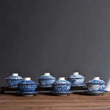 чай Chinese jingdezhen Kung Fu Tea set blue and white gaiwan teapot teacups tea sets porcelain teaware Drinkware