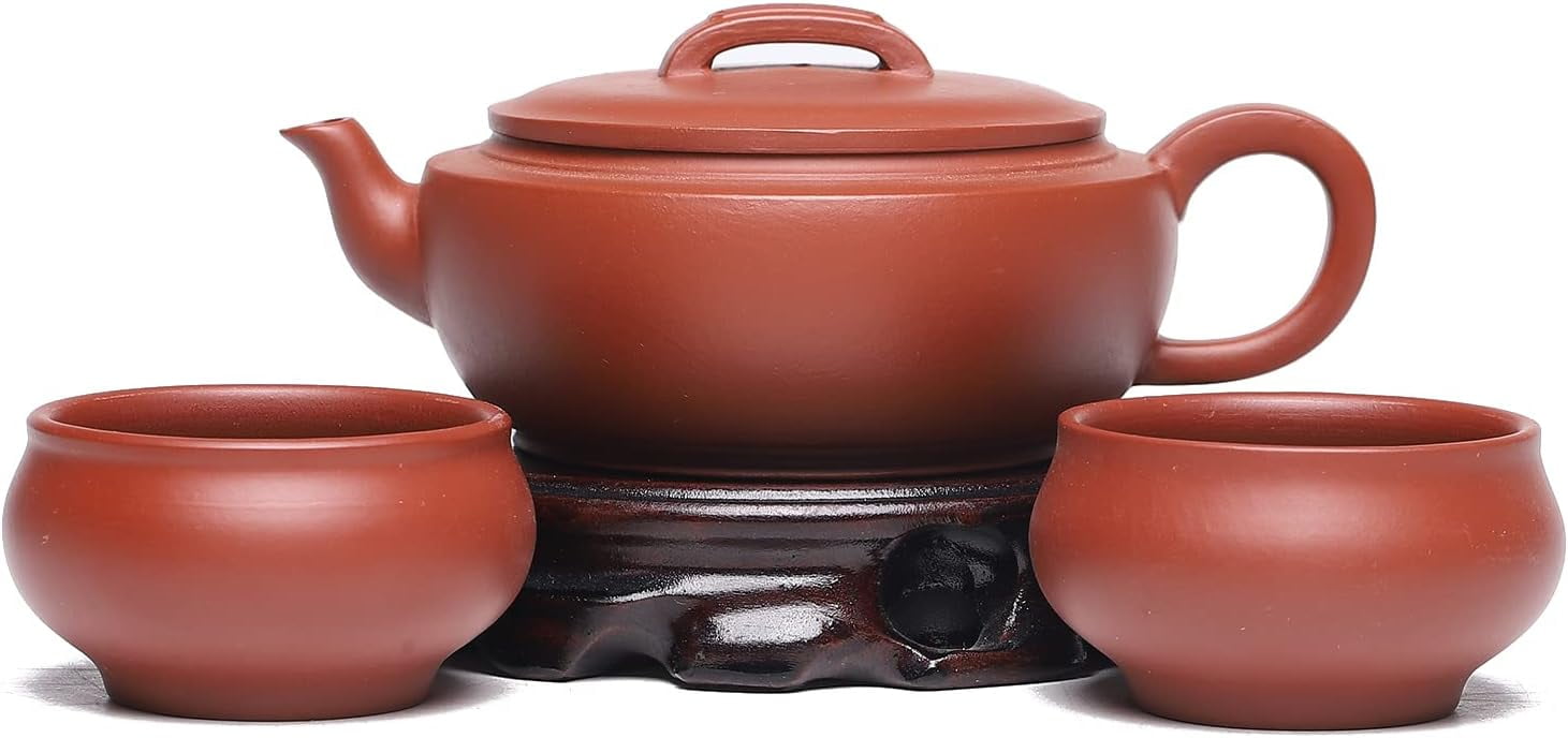 Zisha Tea Pot Set,Master Handmade Genuine Yixing Clay Teapot 5.4 Oz with 2 Cups (Hanwan,Zhuni Clay)