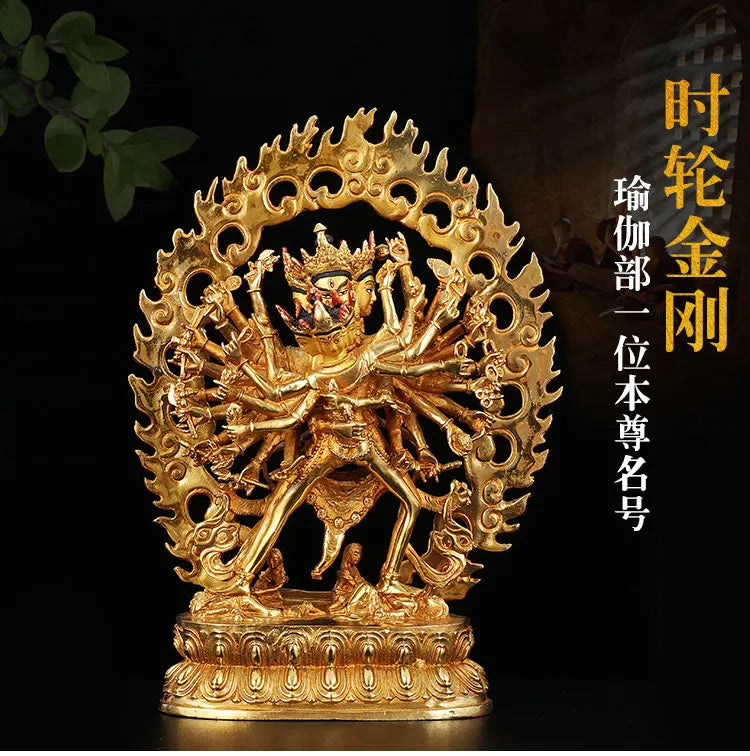 30cmTALL bless Safety Health Talisman # Tibet efficacious Protection Nepal Gold-plated Kalacakravajra Buddha statue