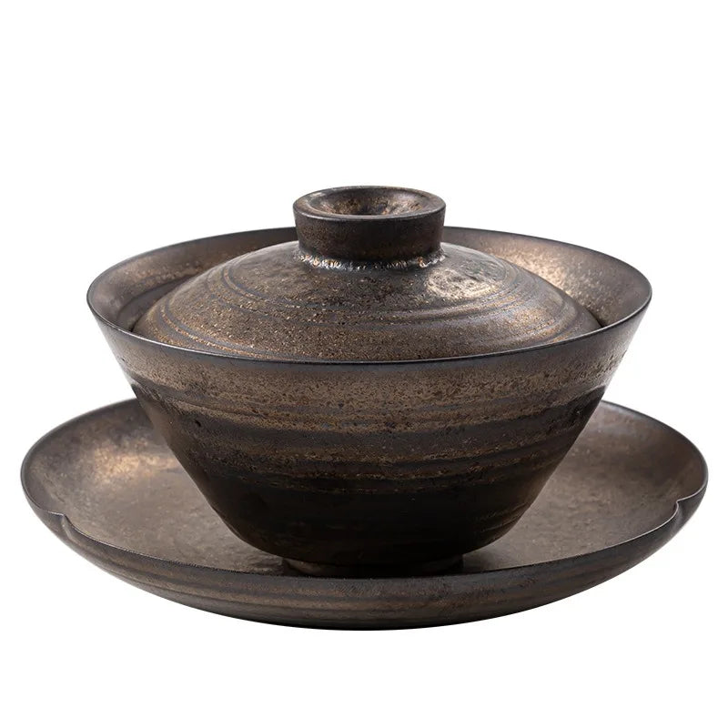 Handmade Gilded Ceramic Tea Bowl, Thin Tire, Three Talent Covered Bowl, Tea Cup, Home, Hospitality, Retro, Kung Fu Tea Set