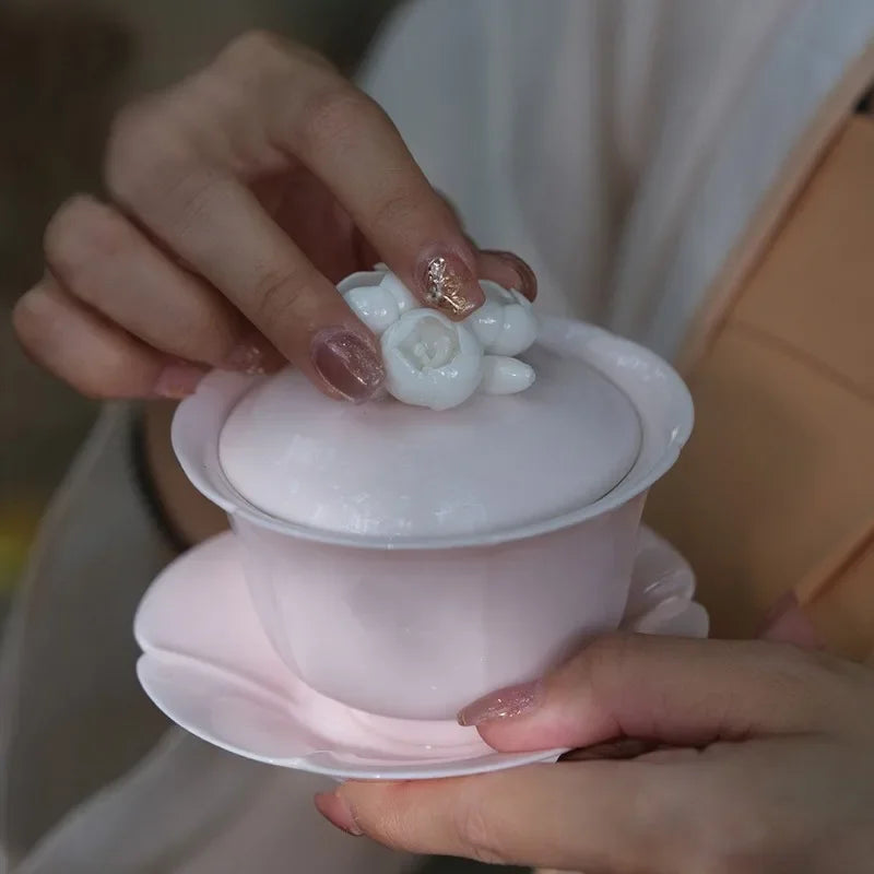 Pinch Flower Teacup Ceramic Gaiwan Bowl Chinese Kung Fu Tea Set Handmade Ladies Gaiwan Cup Water Cup Pu'er Tea Sets Gift