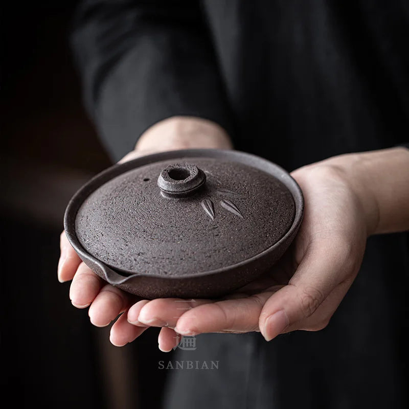 Three Times Japanese Style Coarse Pottery Teapot Handmade Bamboo Chopsticks Aquarius Pot Kung Fu Tea Set Pot Creative Gaiwan T