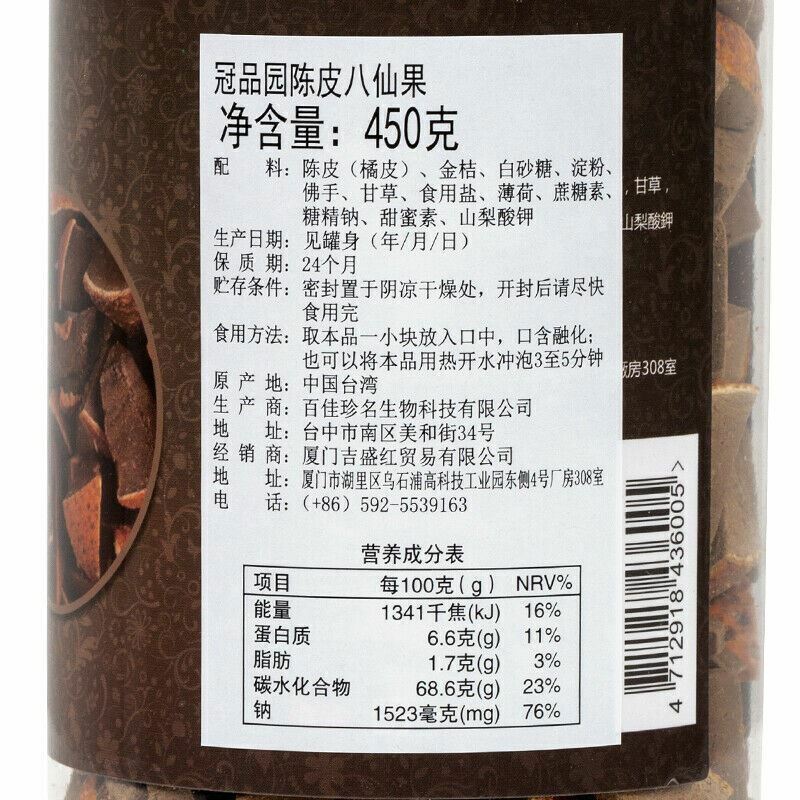 零食种类:  陈皮八仙果