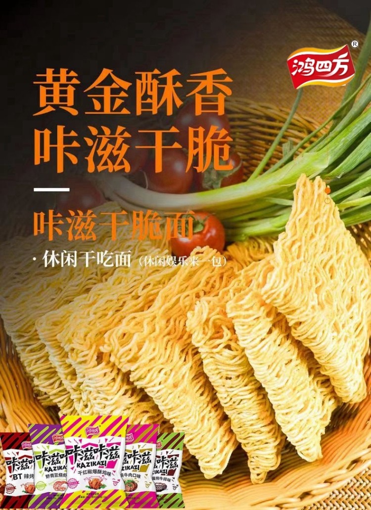 方便干吃脆面鸿四方咔滋大包零食 Easy To Eat Crispy Noodles Red Square Big Bag Of Crunch Snacks