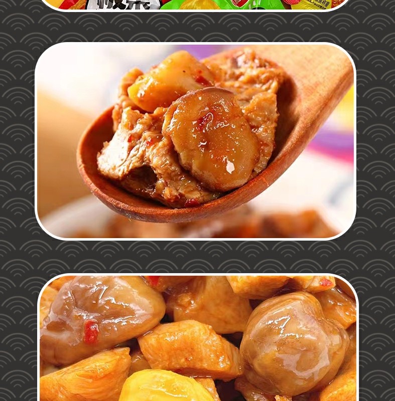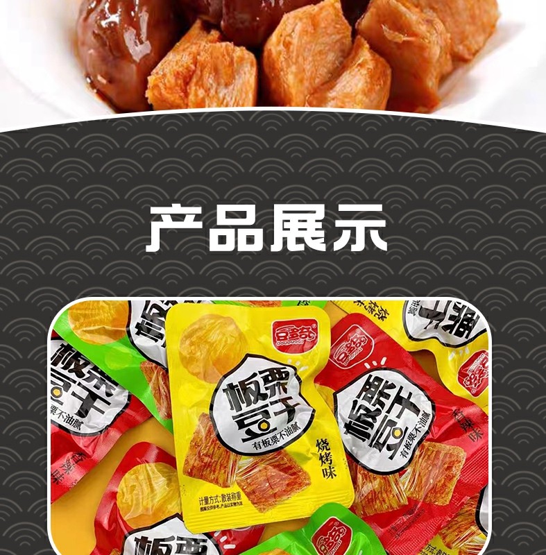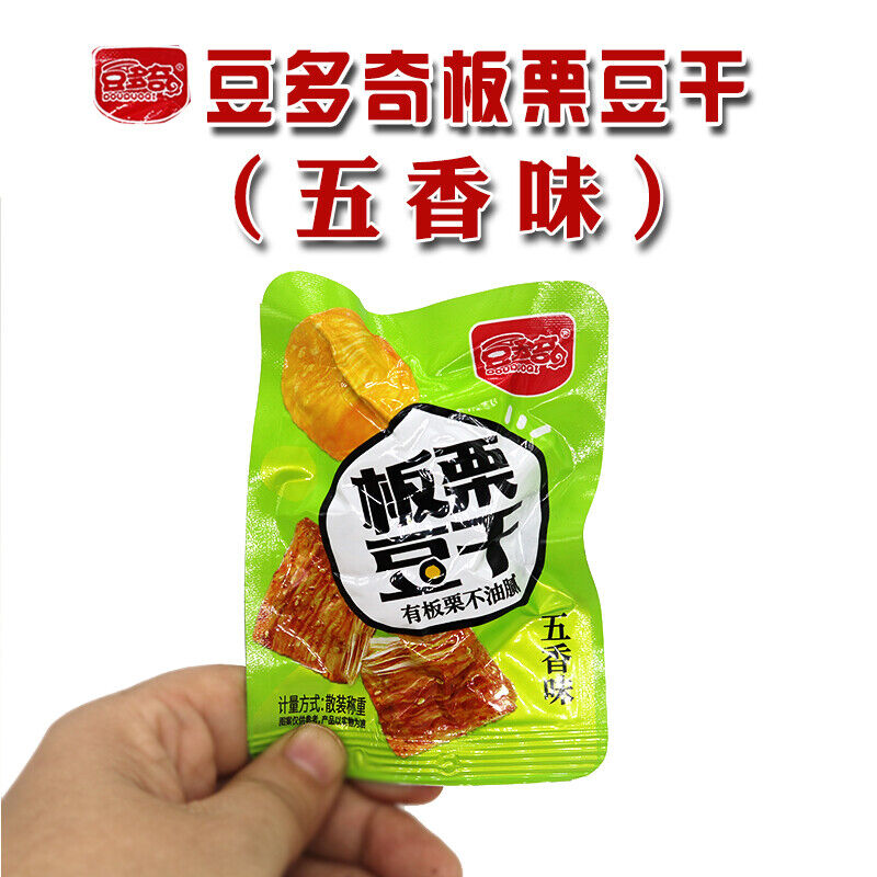 豆多奇板栗豆干香辣味手撕素肉 Bean Dorchi Chestnut Bean Dry Spicy Pulled Vegetable Meat 保质期:270天 Shelf life:270days 储存条件: 常温 Storage condition: room tempera