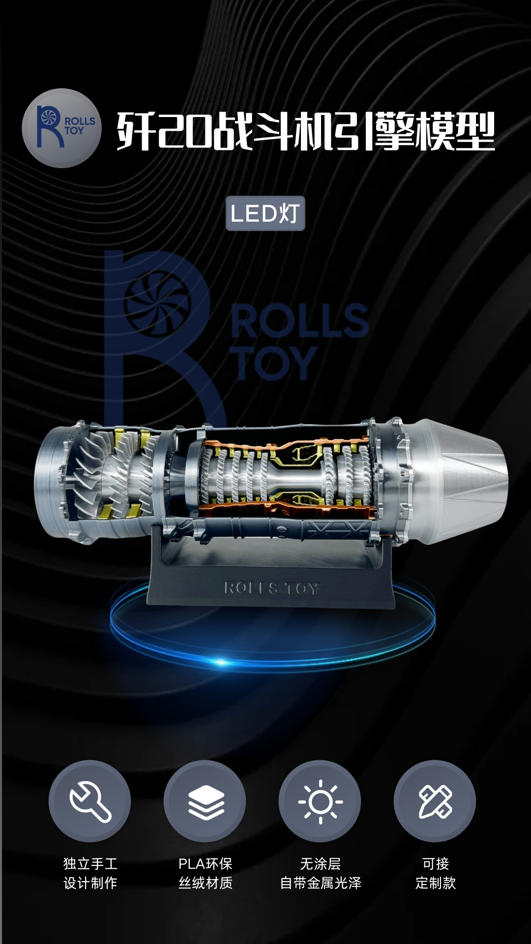 1/18 Mini Fighter J-20 Aircraft Engine Model Electric Finished Model Toy Gift