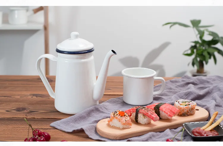 1.1LThickened Enamel Thin Mouth Pots Drip Coffee Pot Gooseneck Spout Long Mouth Coffee Kettle Home Tea Tool bule esmaltado