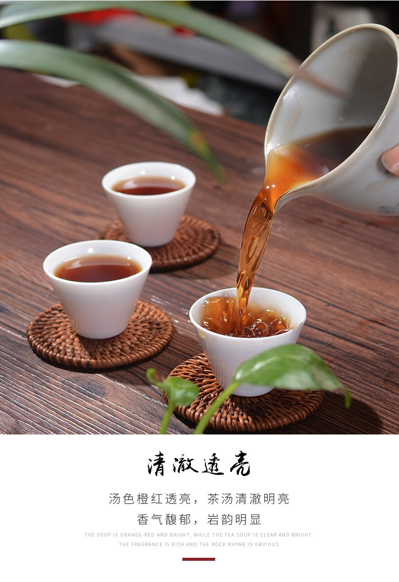 Just like Pu-erh tea, the taste of Rock teas from Wuyi Mountains get smoother with aging. For a time now, tea cakes compressed from great Wuyi teas such as Da Hong Pao have been made by some individuals for personal consumption and sometimes as gifts. The process closely follows the process used to create a once famous, Song Dynasty tribute tea cake called "Long Tuan Feng Bing" (Dragon Phoenix Tea Cake). The tightly compressed cake has Da Hong Pao in Chinese on the surface. This tea is ready for drinking now or it can be kept for further aging. Strong and full-bodied Da Hong Pao cake becomes more mellow and smoother as it ages.