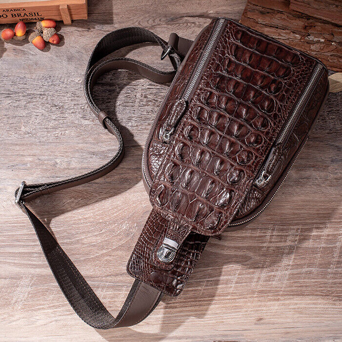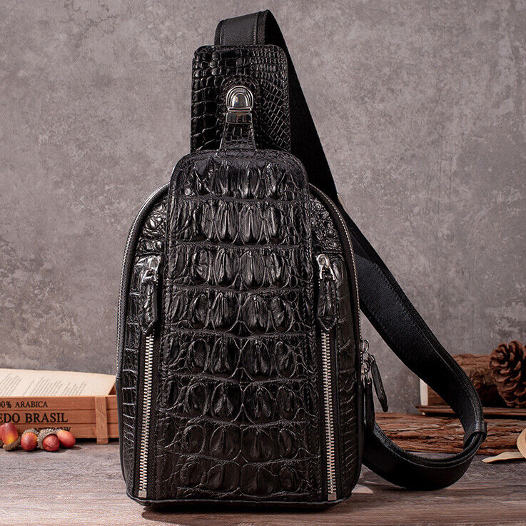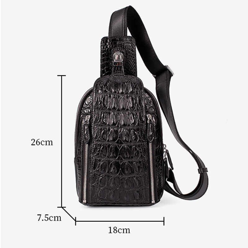 100% Crocodile Alligator Skin Leather Crossbody bag, Men's Luxury Sling Backpack