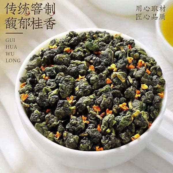 Osmanthus Oolong Tea is an exquisite scented tea that combines high-grade Fujian oolong with golden osmanthus flowers, creating a perfect harmony of deep tea aroma and sweet floral fragrance.