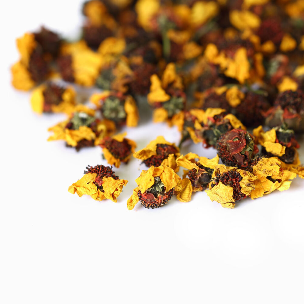 Xinjiang Kunlun snow chrysanthemum grows naturally in the north of Karakoram mountain, in the high cold area with an altitude of 3200 meters above sea level.It is the absolute treasure among all kinds of chrysanthemums since it grows in a pure natural environment without pollution. It is not only cheery red, nice-smelling and excellent taste as the pu'er tea or the red wine but also possesses the extremely obvious value of medicinal and health care. Chinese Snow Chrysanthemum improves the function of livers and eye sights, detoxify our body. Caffeine free, it does not cause any side-effects like tension and nervousness.