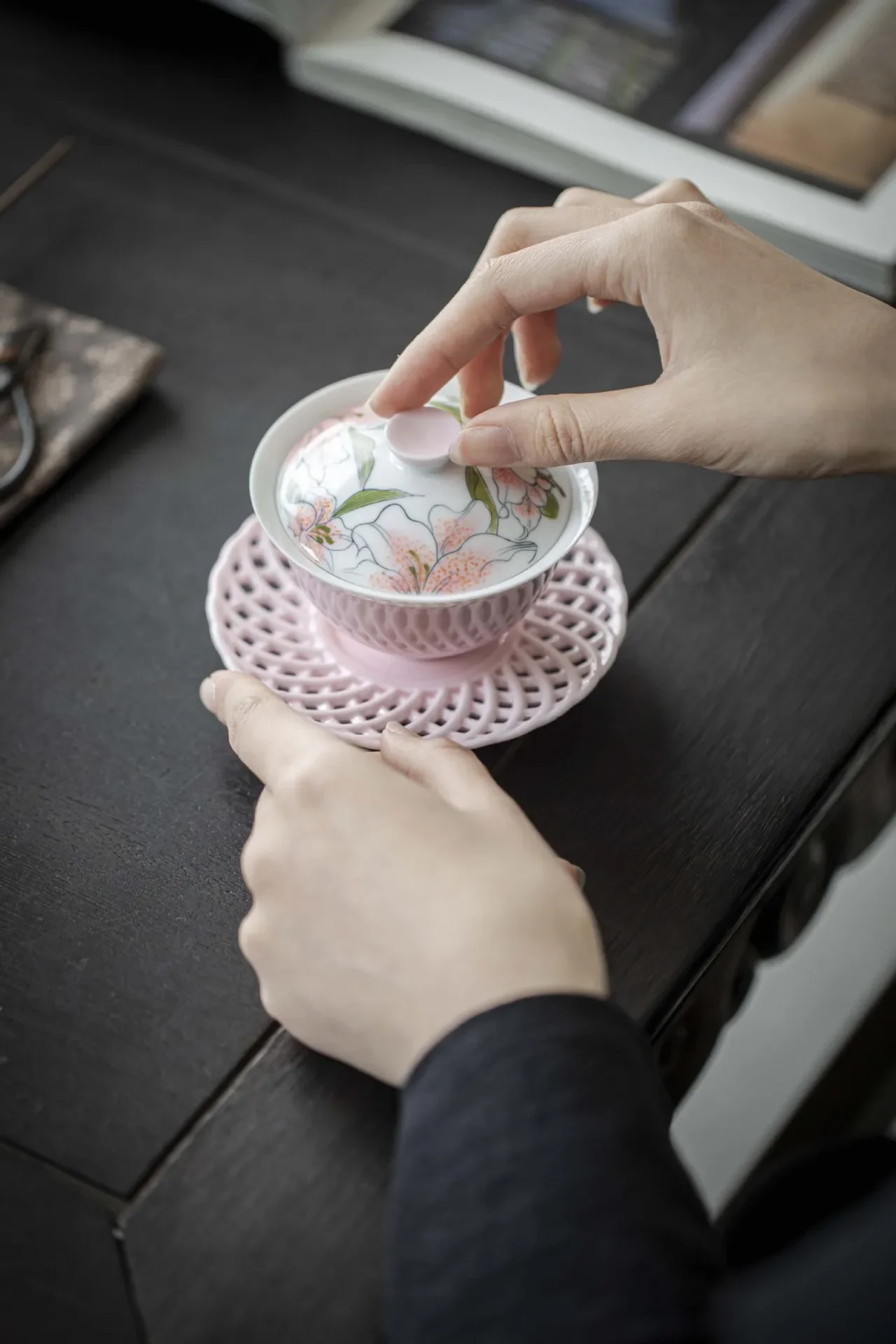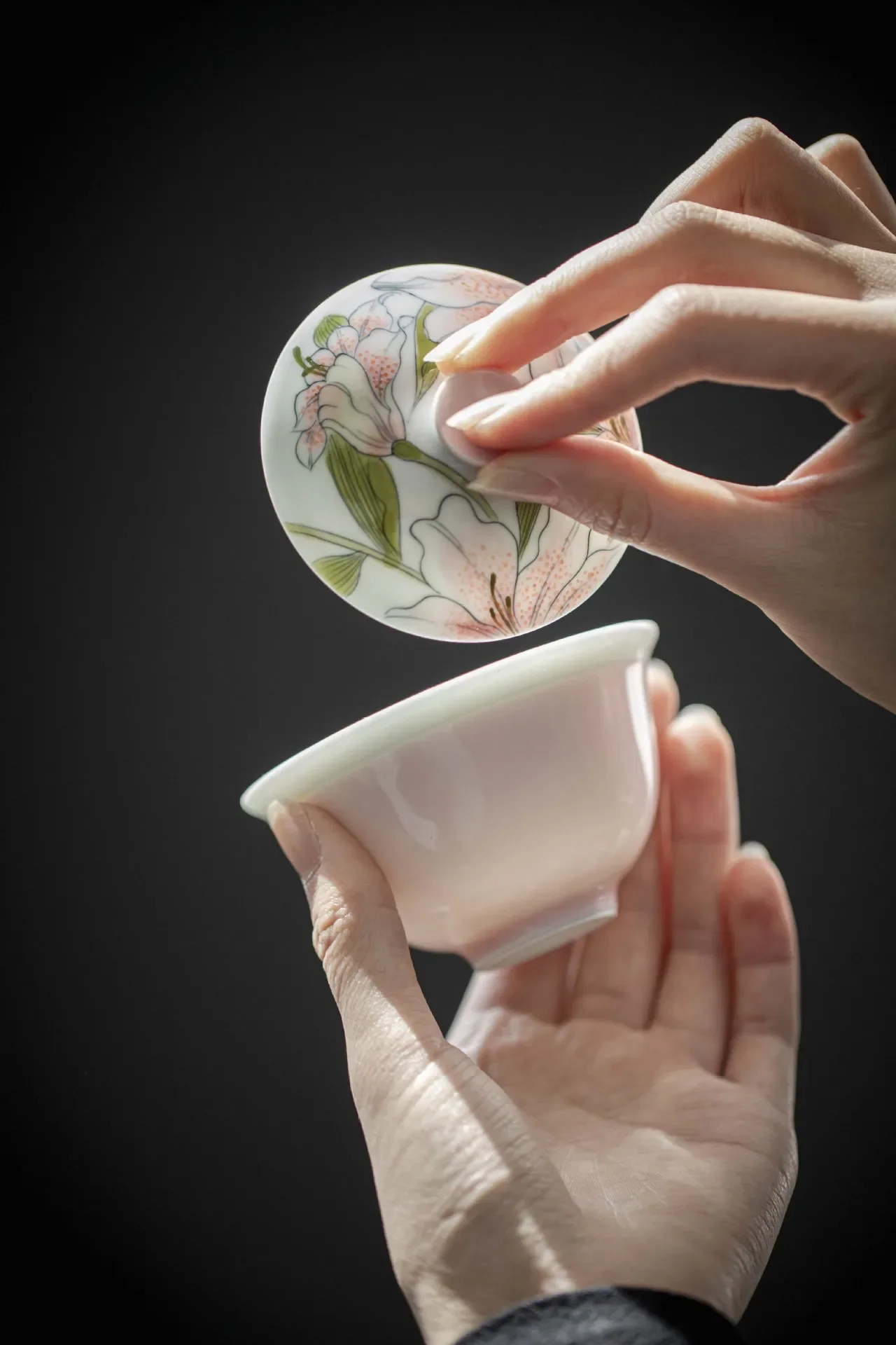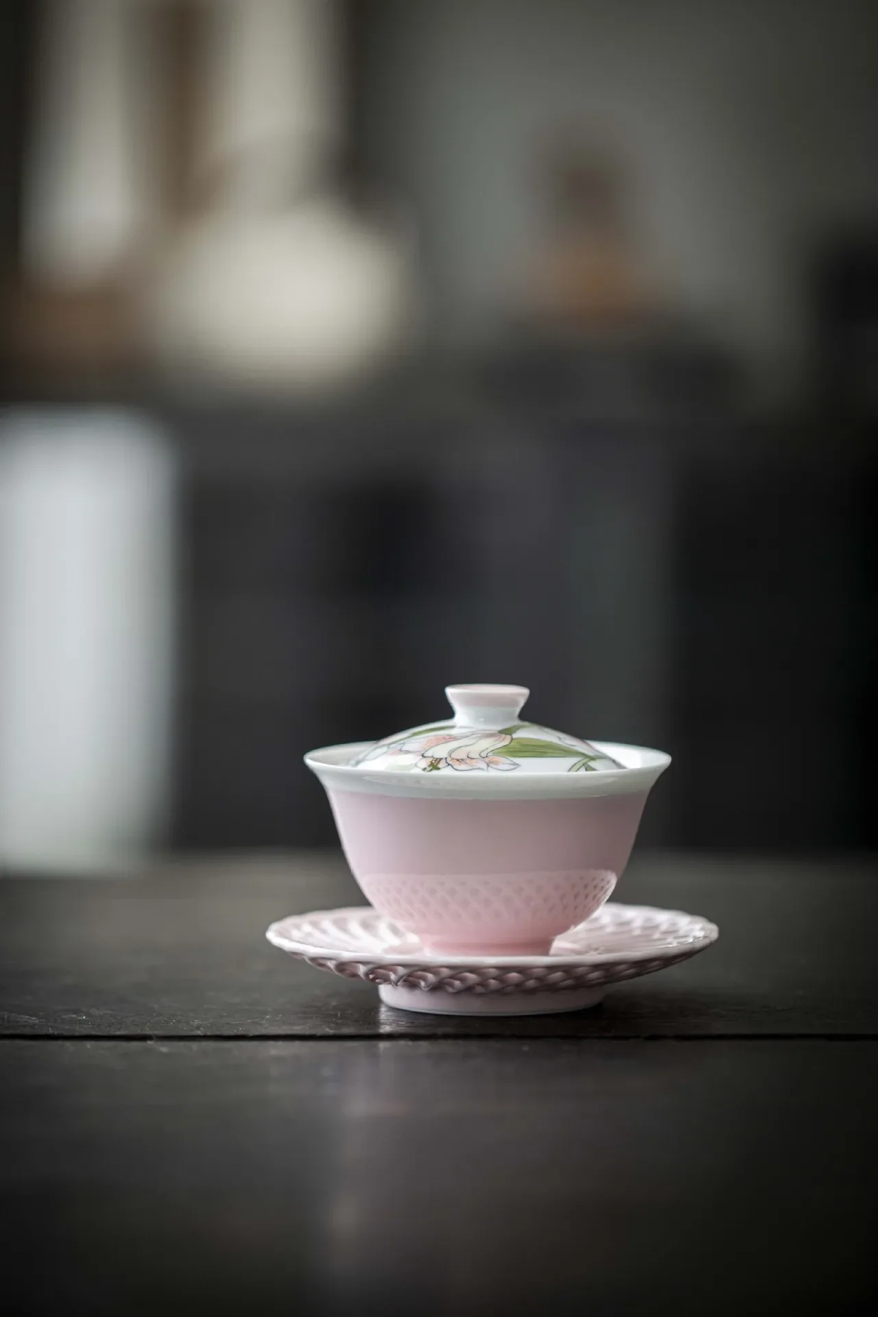 110ml Hand-painted Powder Lily Ceramic Tea Tureen Tea Maker Sancai Cover Bowl Literati Exquisite Tea Bowl Kung Fu Tea Set Gift