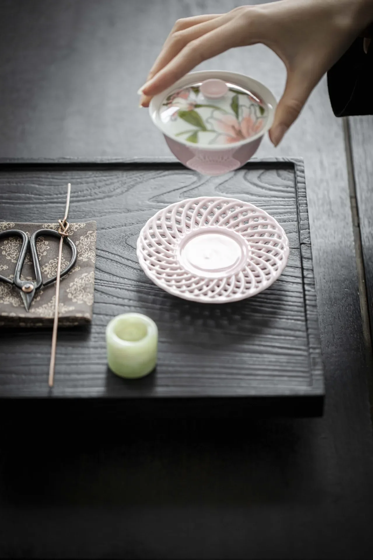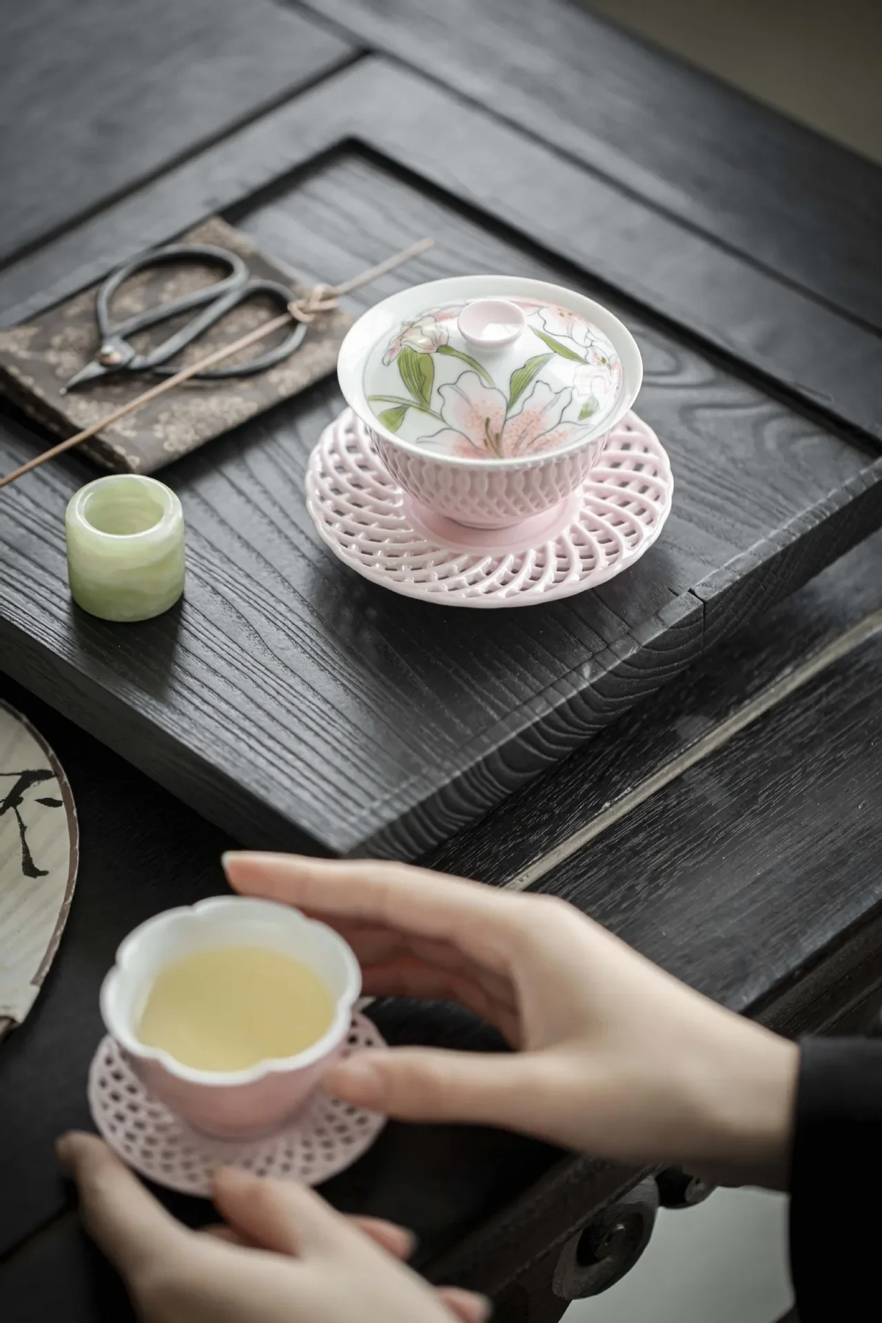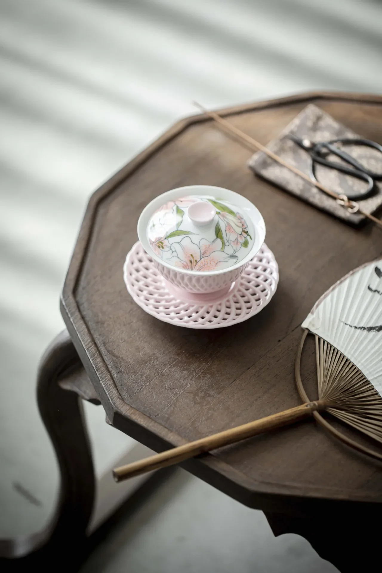 110ml Hand-painted Powder Lily Ceramic Tea Tureen Tea Maker Sancai Cover Bowl Literati Exquisite Tea Bowl Kung Fu Tea Set Gift