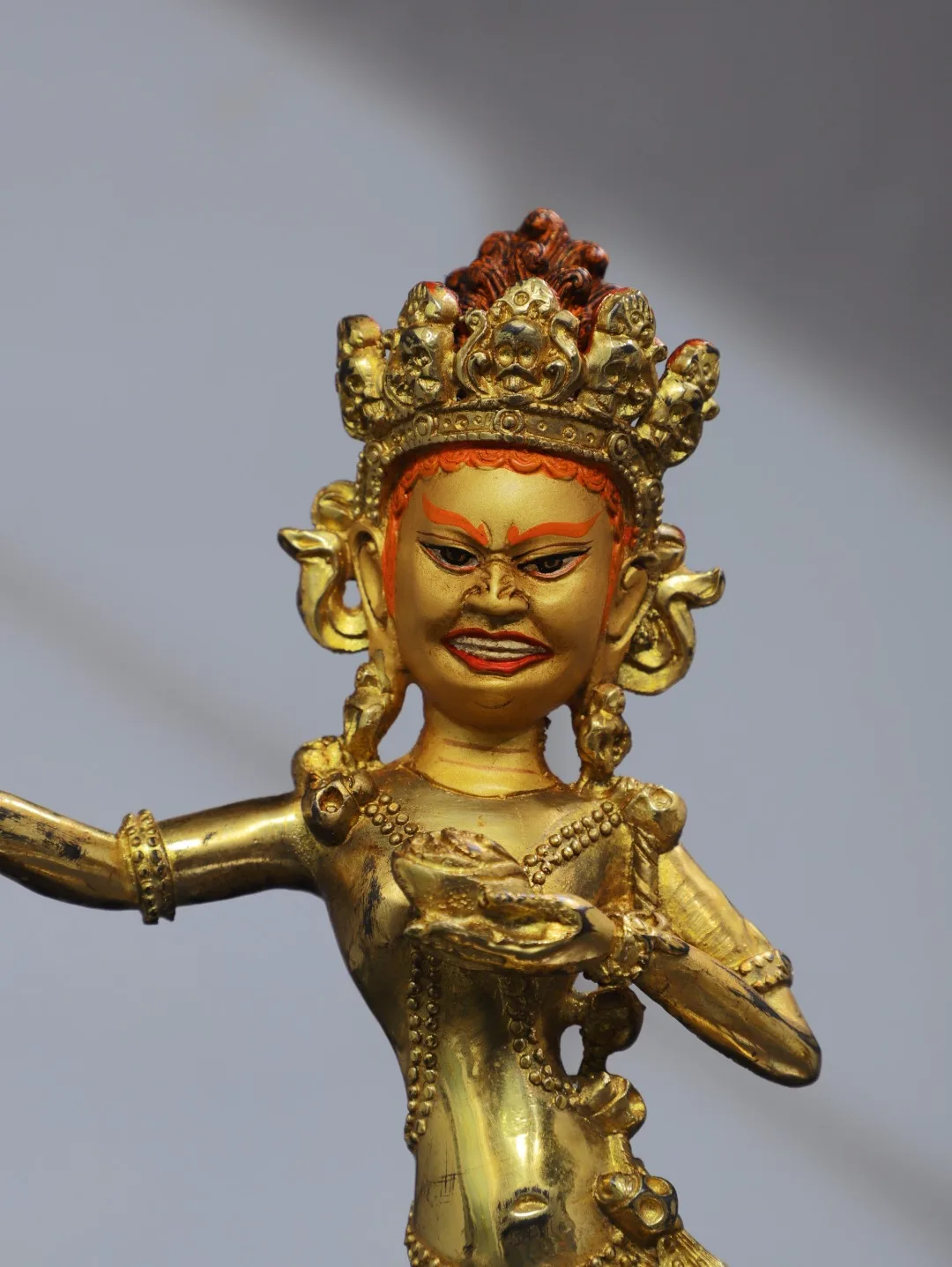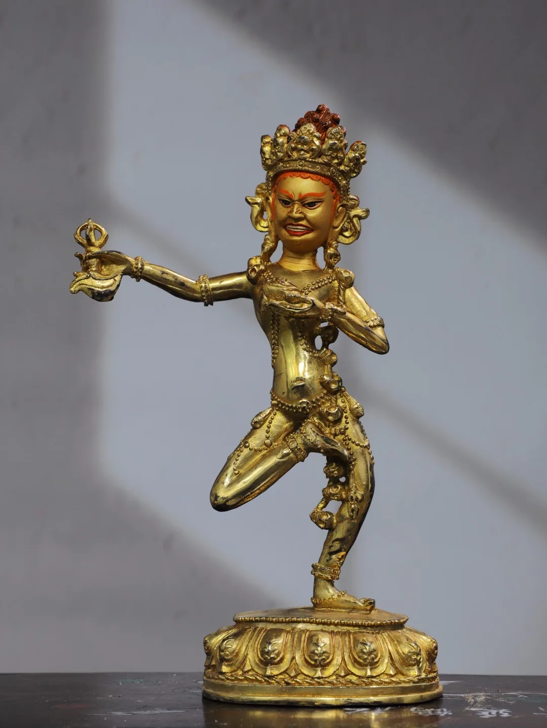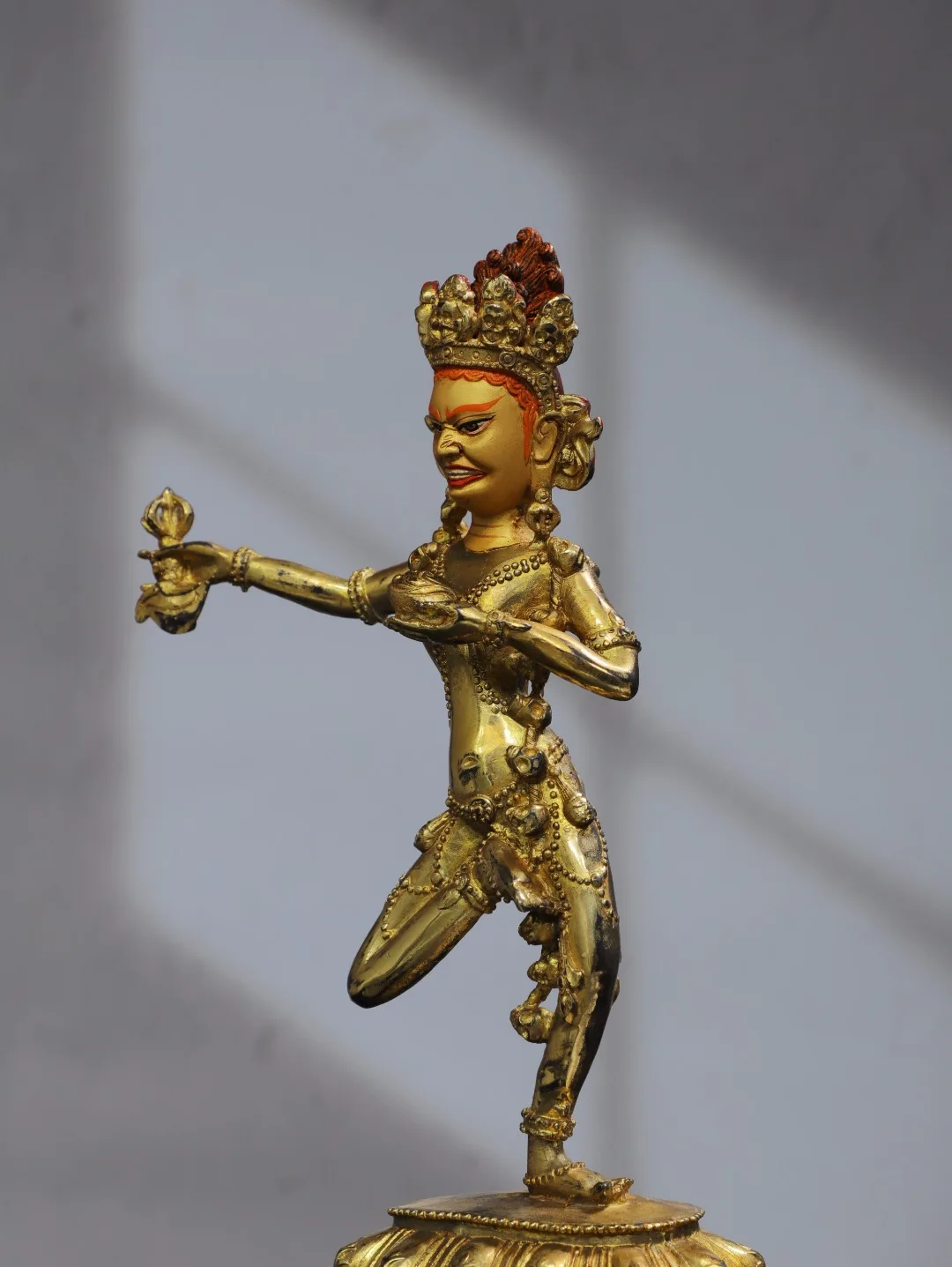 11"Tibet Temple Collection Old Bronze Gilding Cinnabar Painted DAKINI Backlit Vajravarahi Buddha Worship Hall Town house