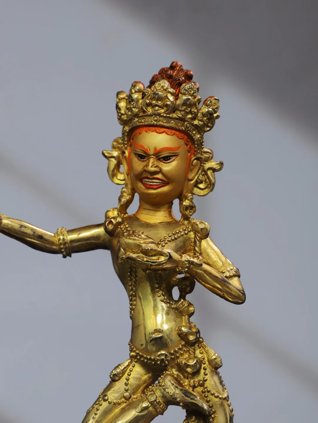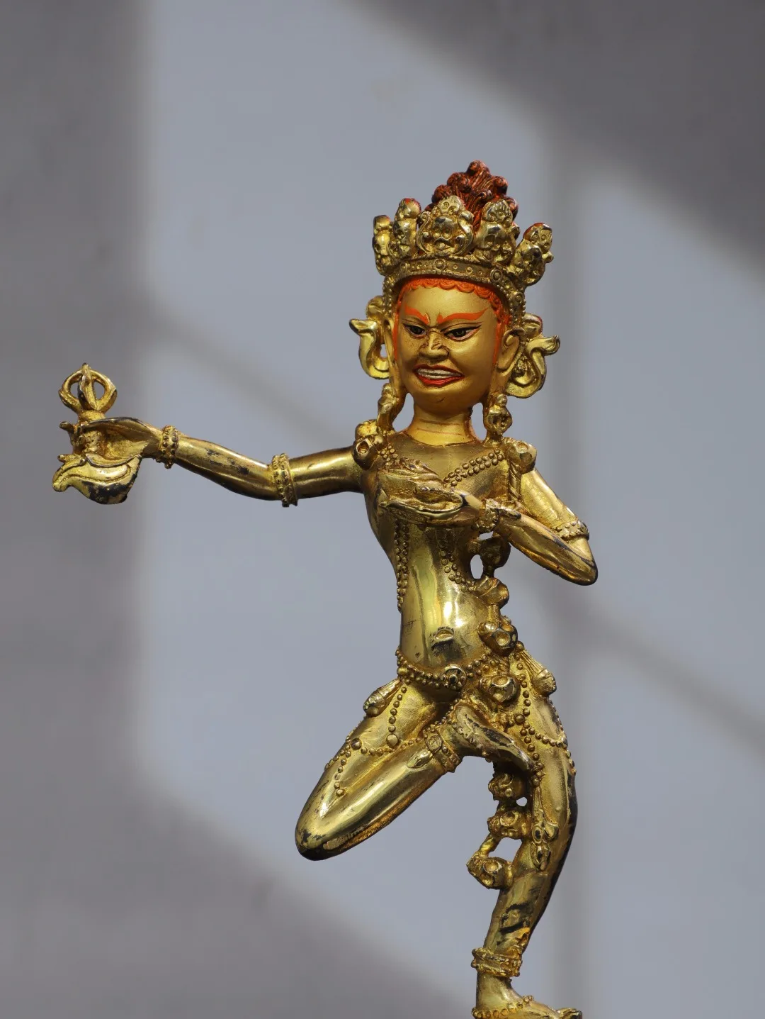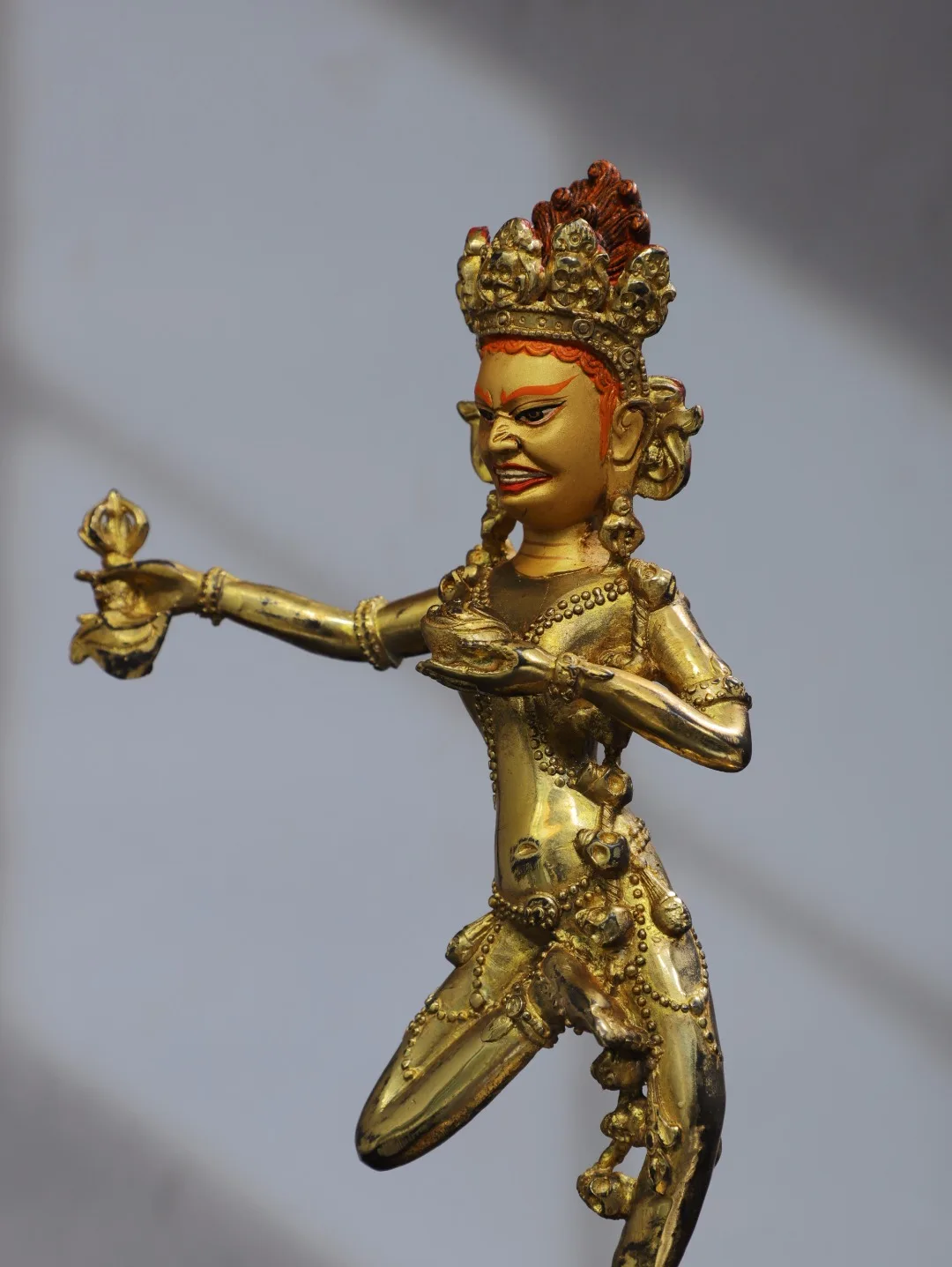 11"Tibet Temple Collection Old Bronze Gilding Cinnabar Painted DAKINI Backlit Vajravarahi Buddha Worship Hall Town house