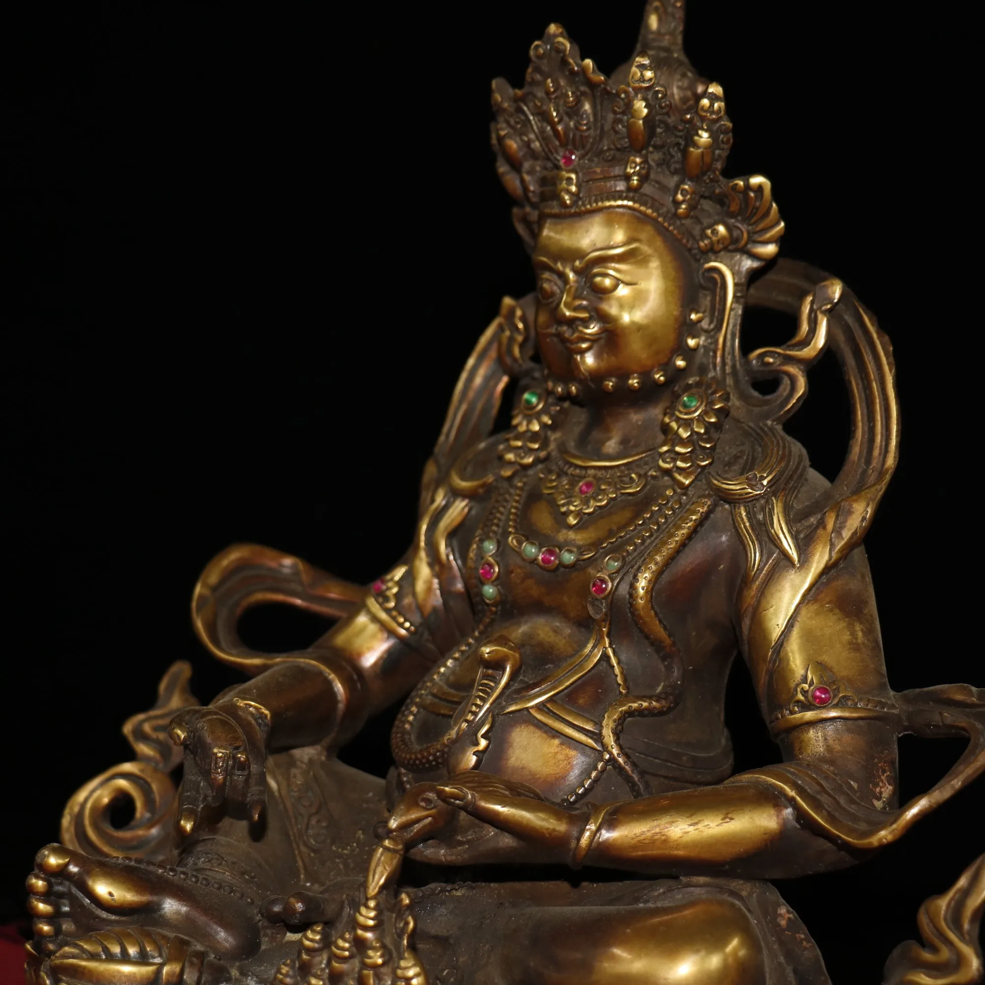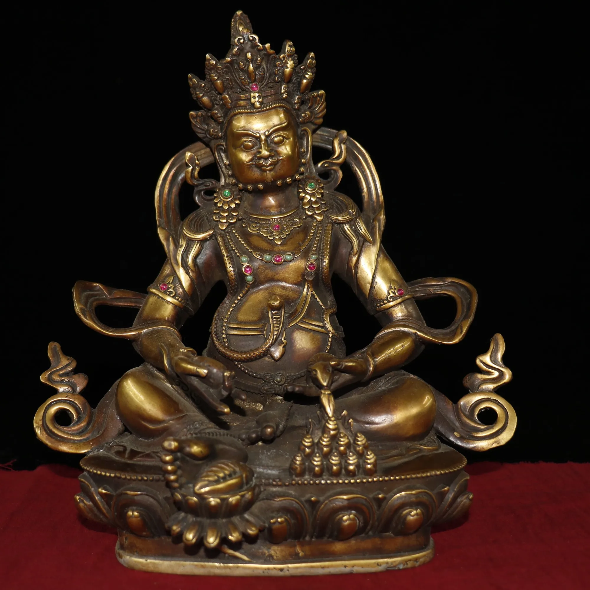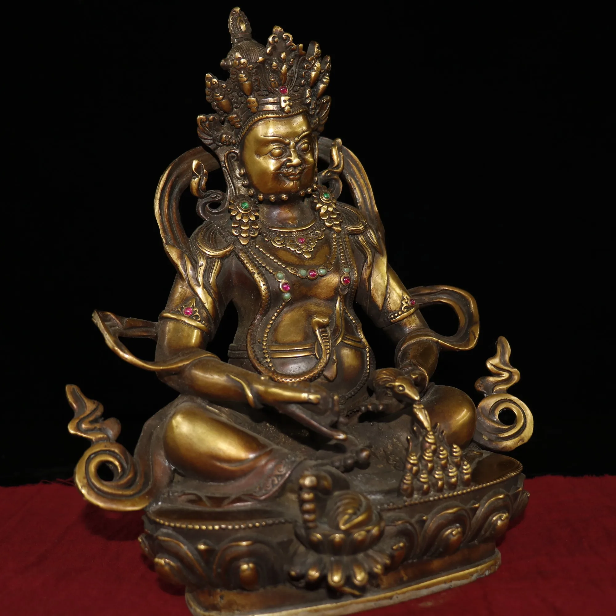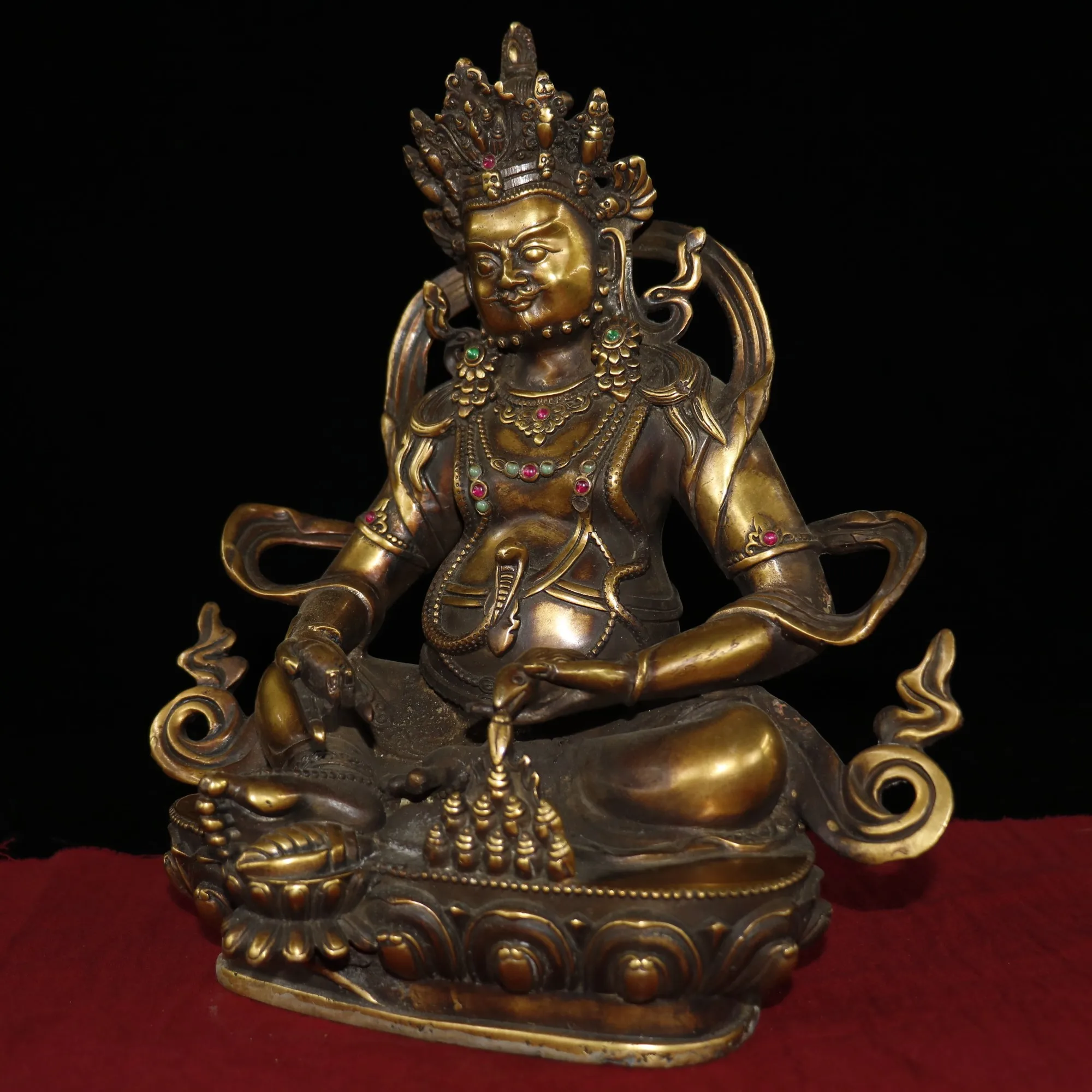 12"Tibetan Temple Collection Old Bronze mosaic gem Yellow God of Wealth Buddha Huang Caishen Lotus Terrace Enshrine the Buddha