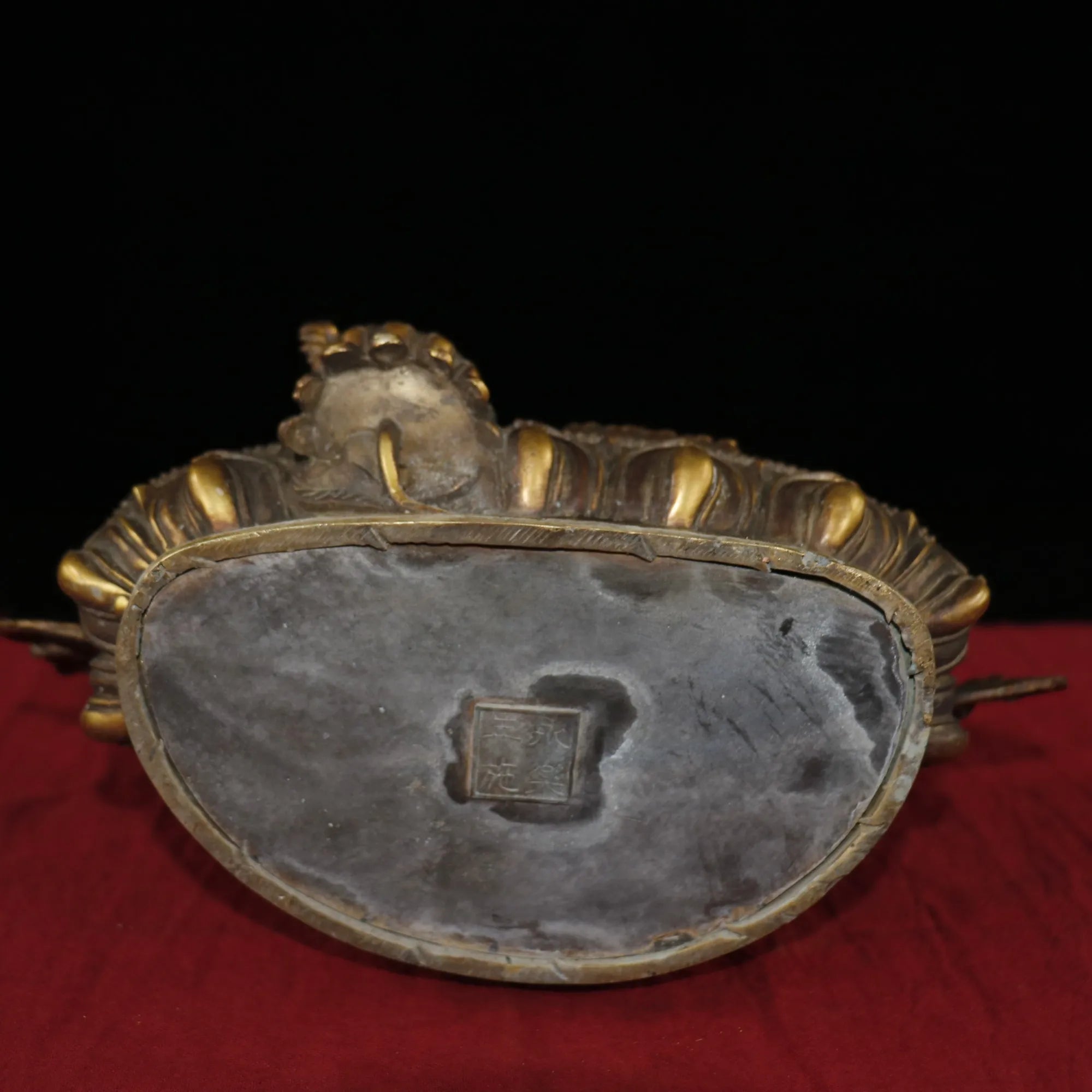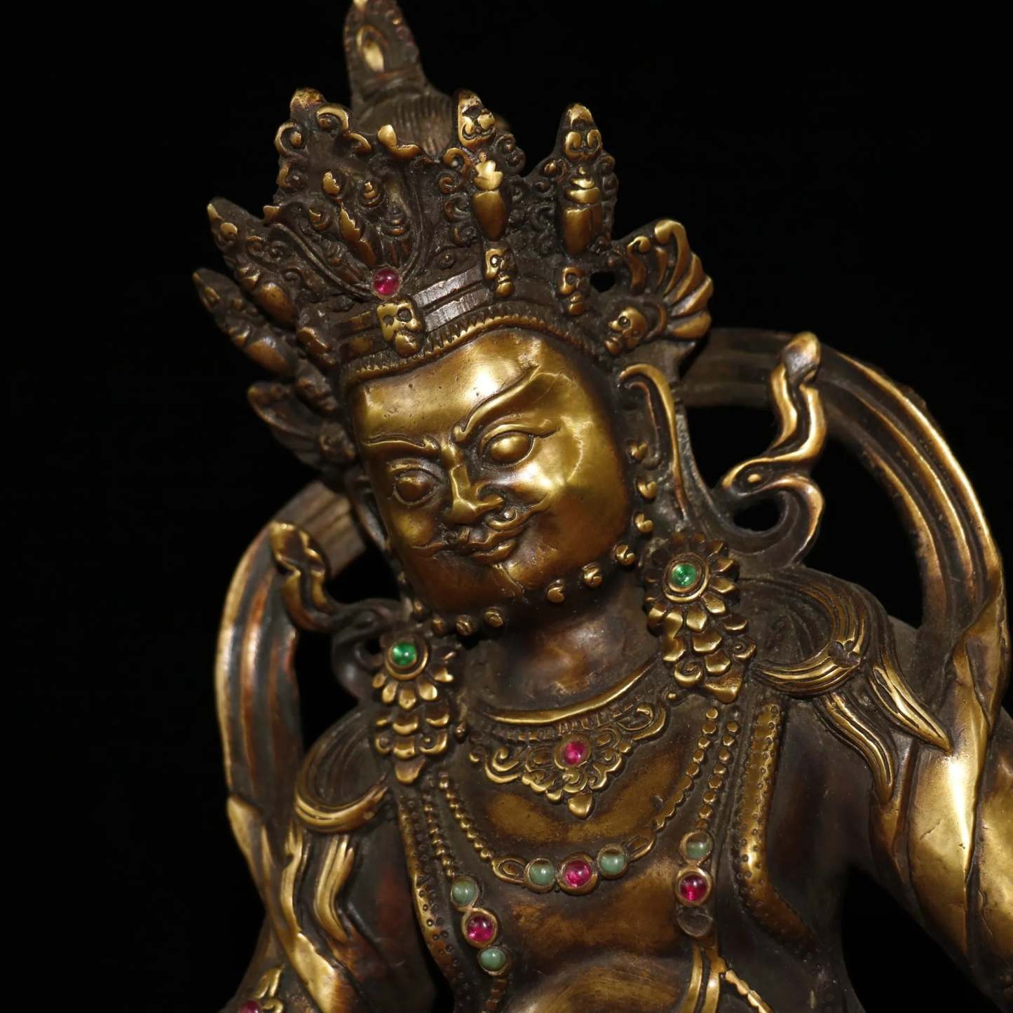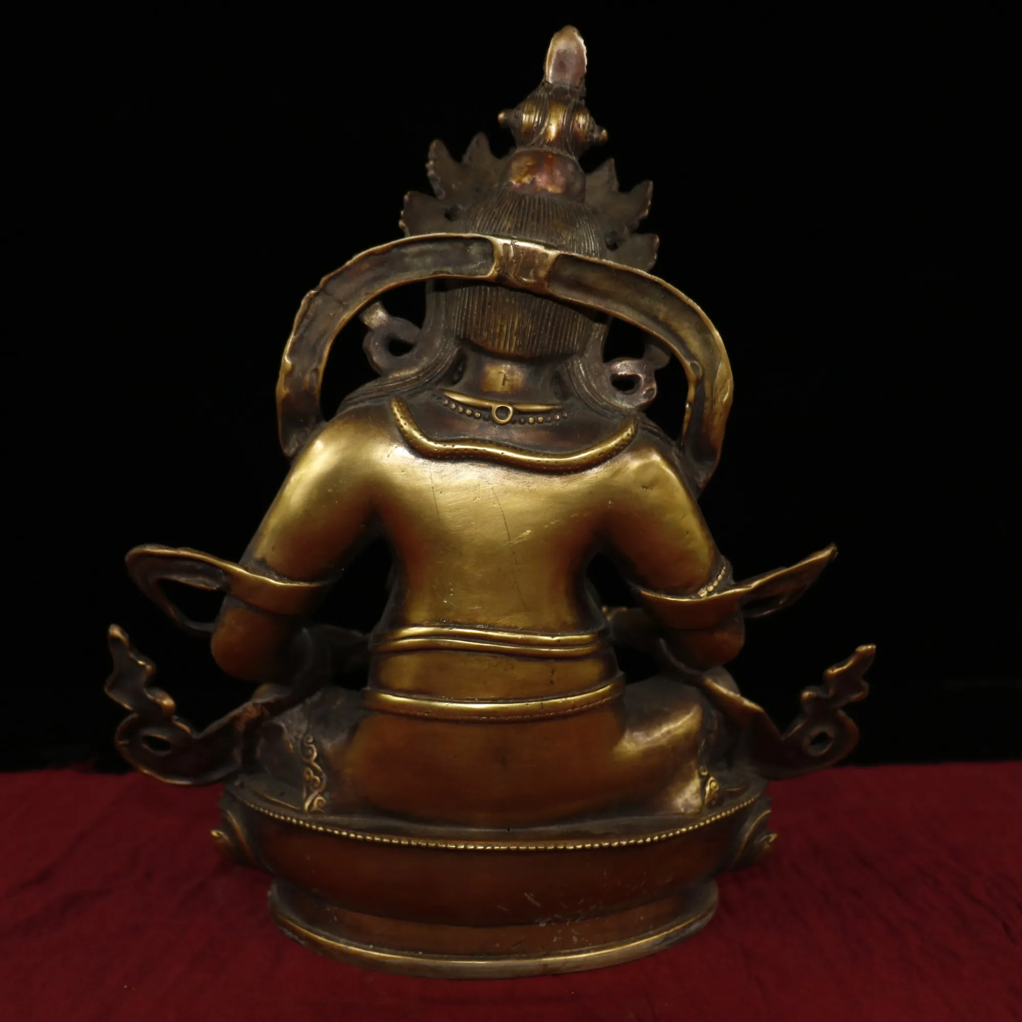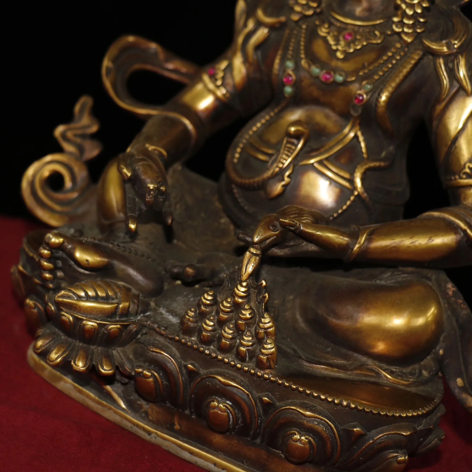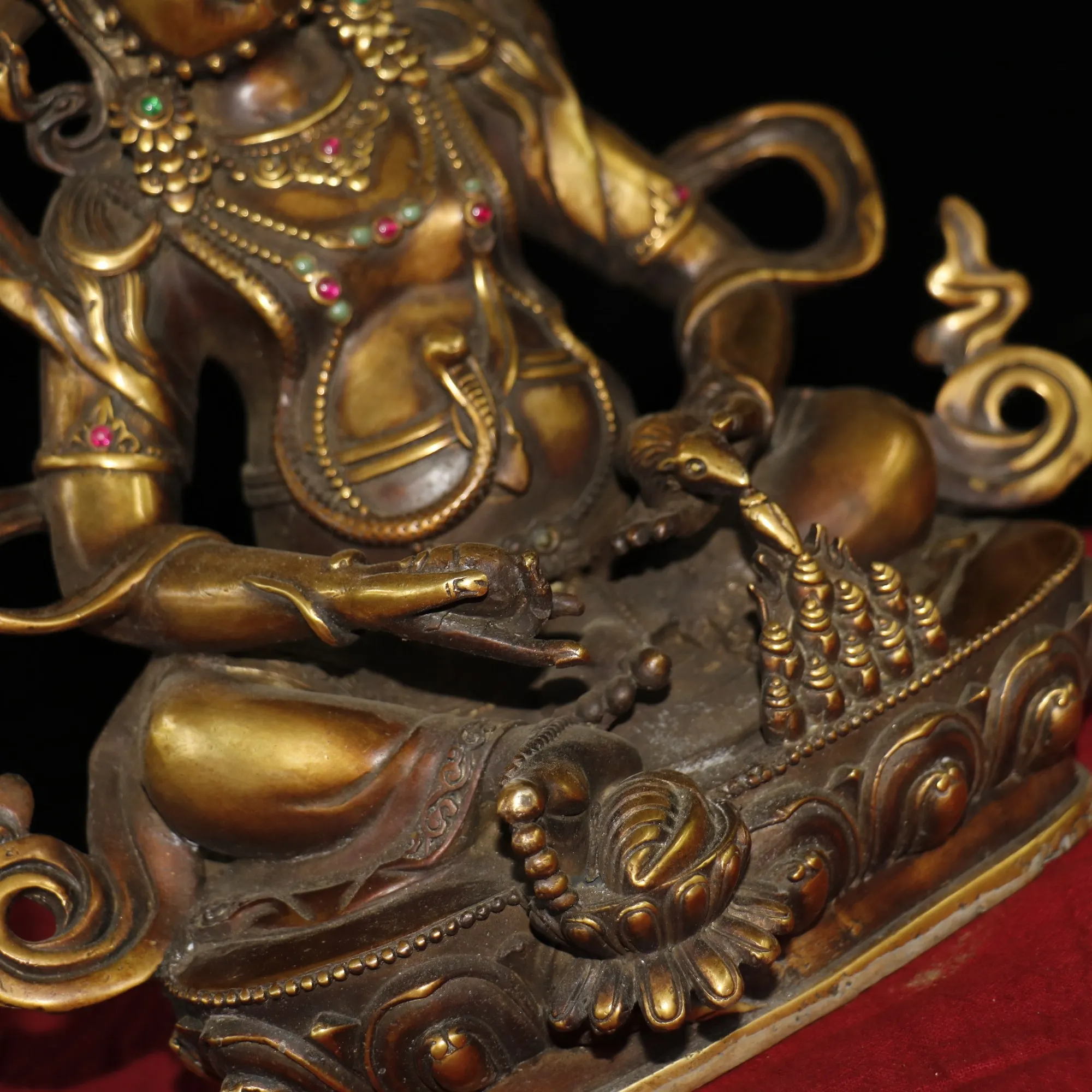12"Tibetan Temple Collection Old Bronze mosaic gem Yellow God of Wealth Buddha Huang Caishen Lotus Terrace Enshrine the Buddha