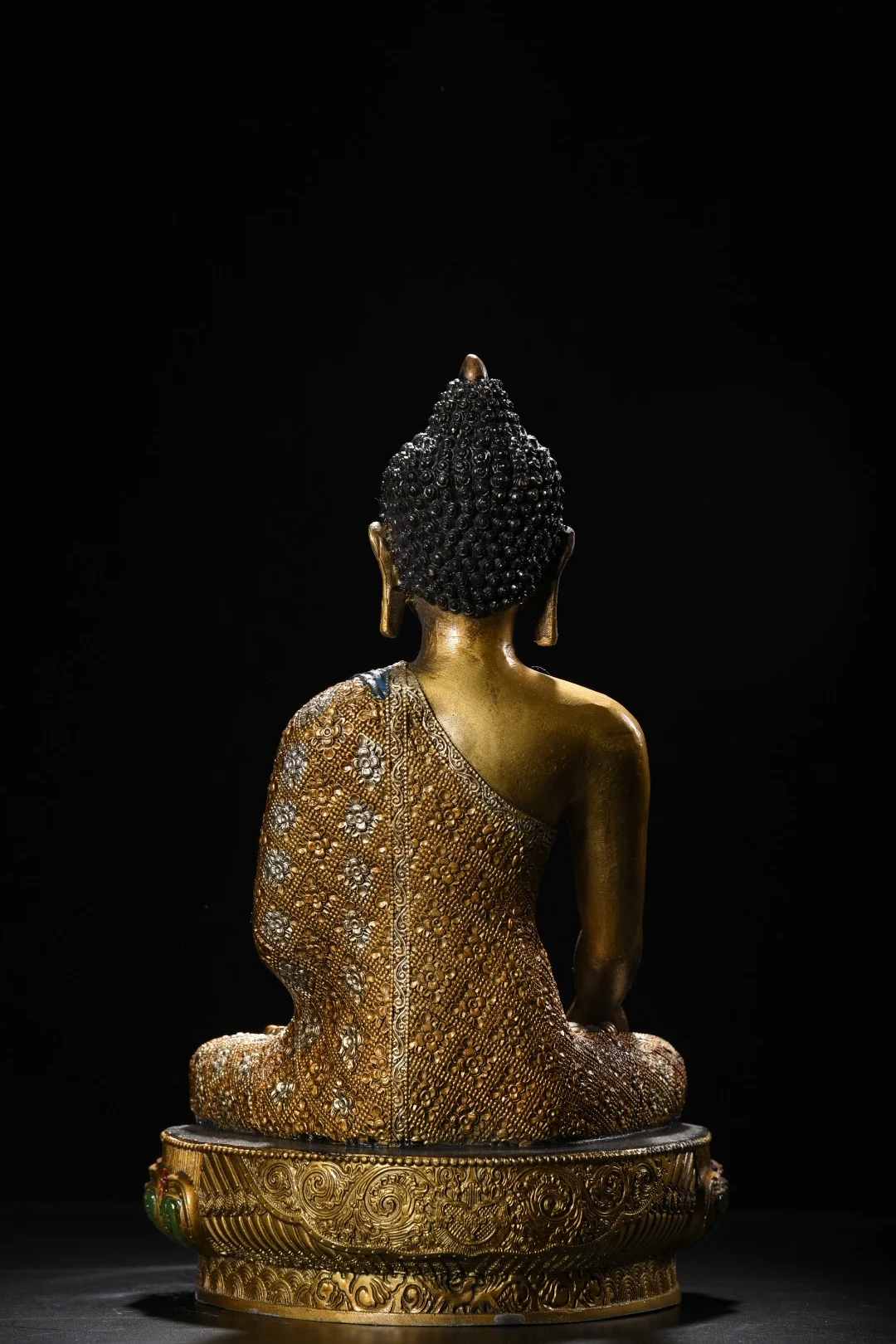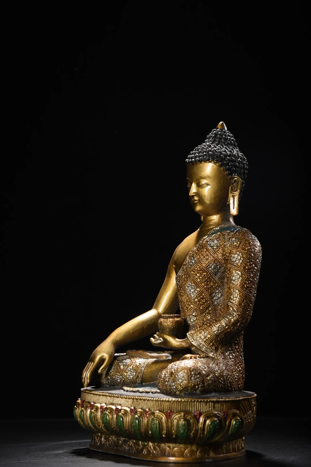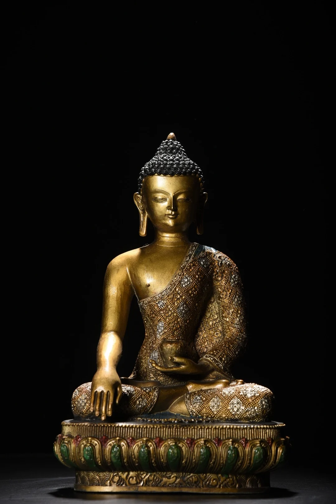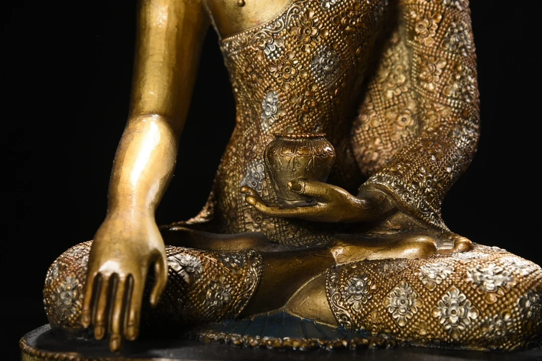 12"Tibetan Temple Collection Old Bronze Painted Cinnabar Shakyamuni Amitabha Buddha Lotus Terrace Worship Hall Town house