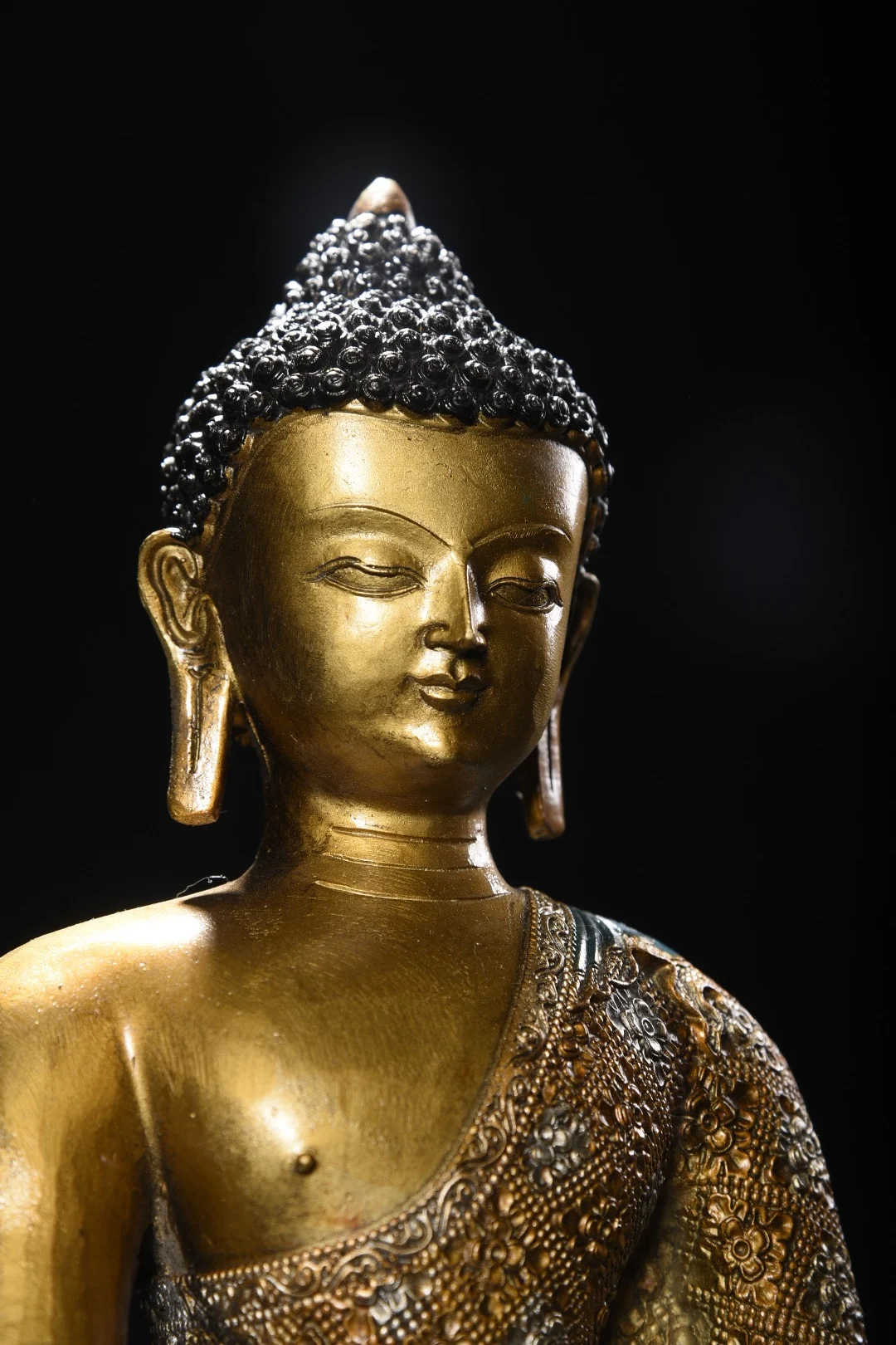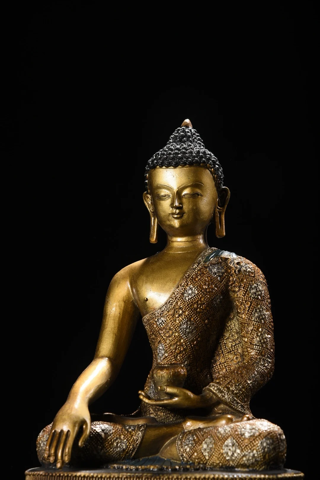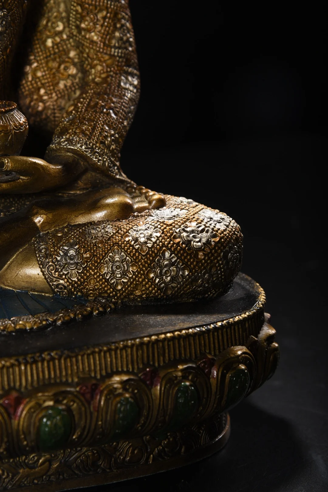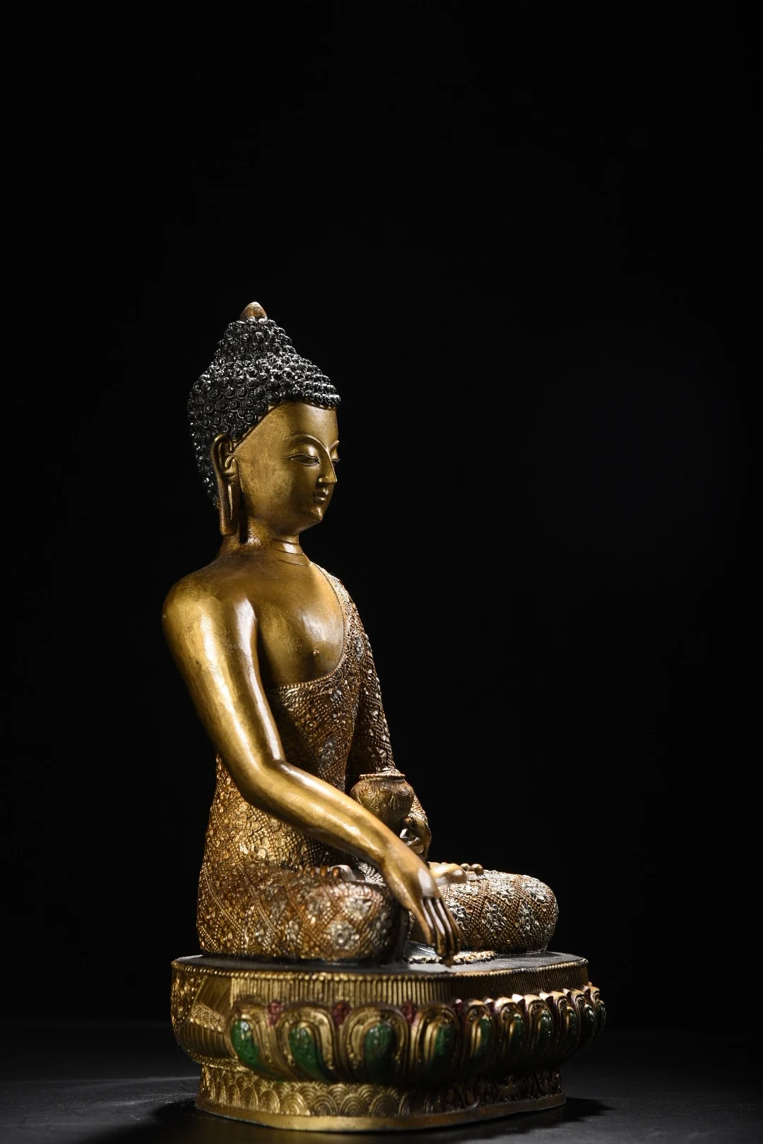 12"Tibetan Temple Collection Old Bronze Painted Cinnabar Shakyamuni Amitabha Buddha Lotus Terrace Worship Hall Town house