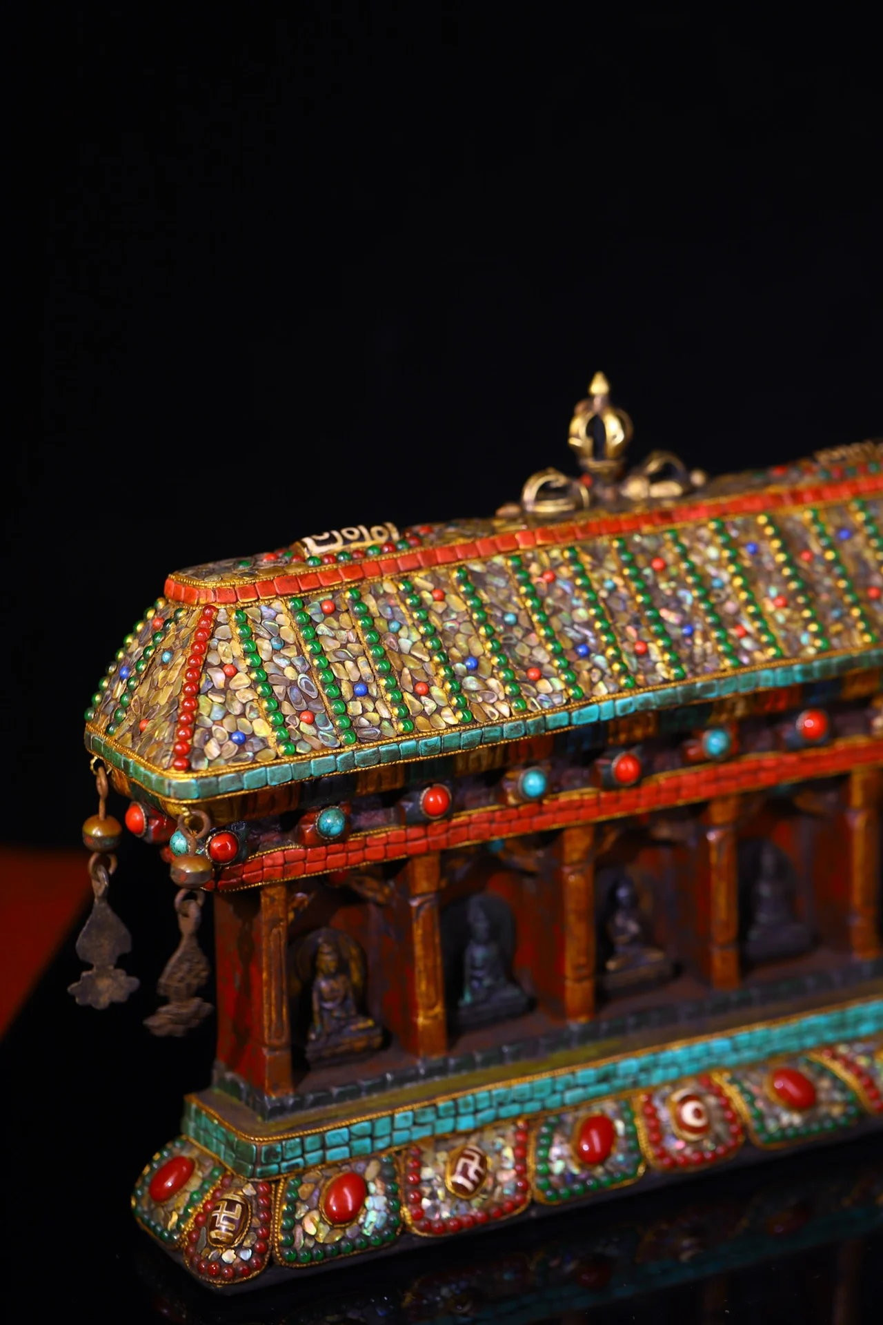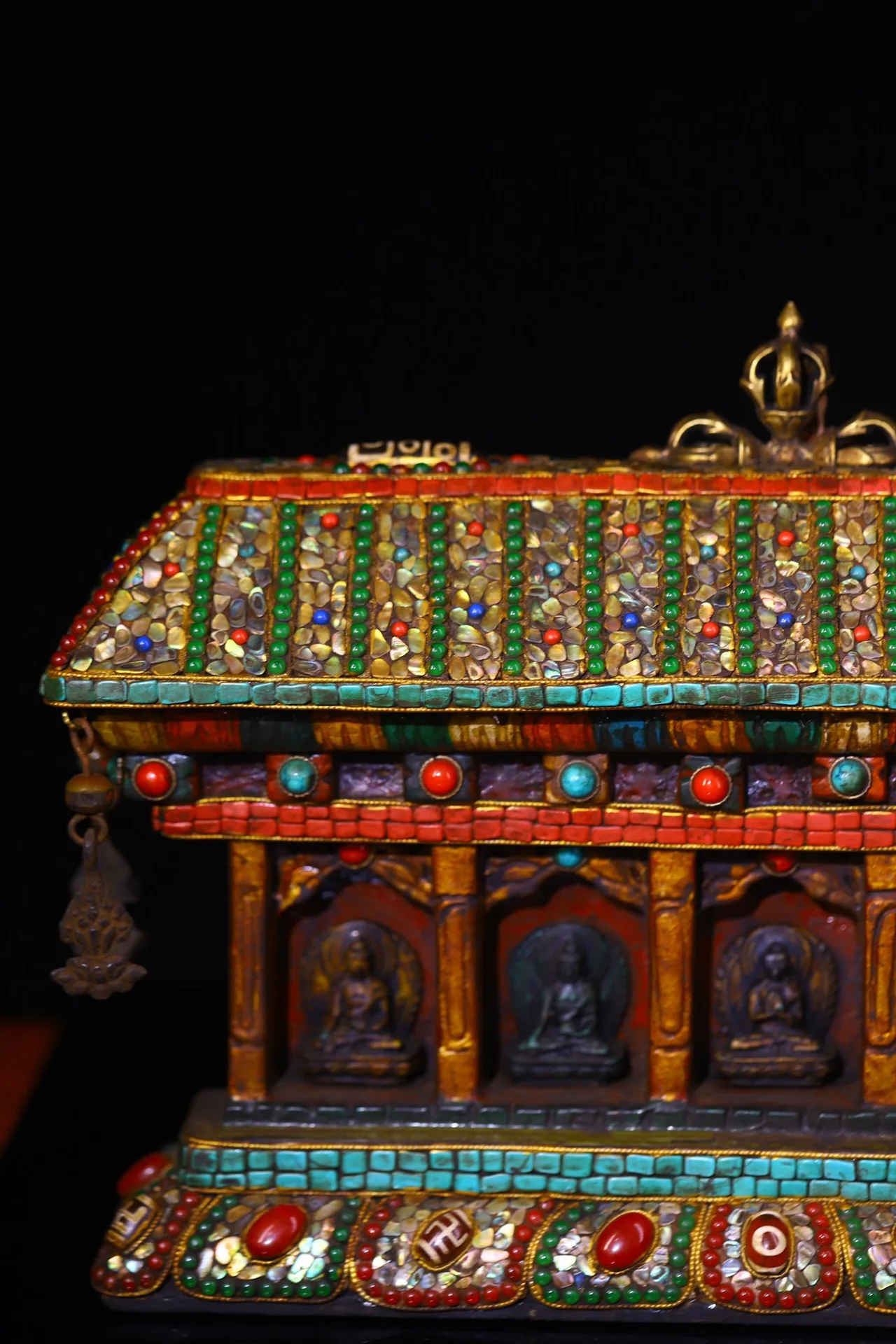 Materials: Old Bodhi Root Painted Mosaic Gem Shell gZi Beads