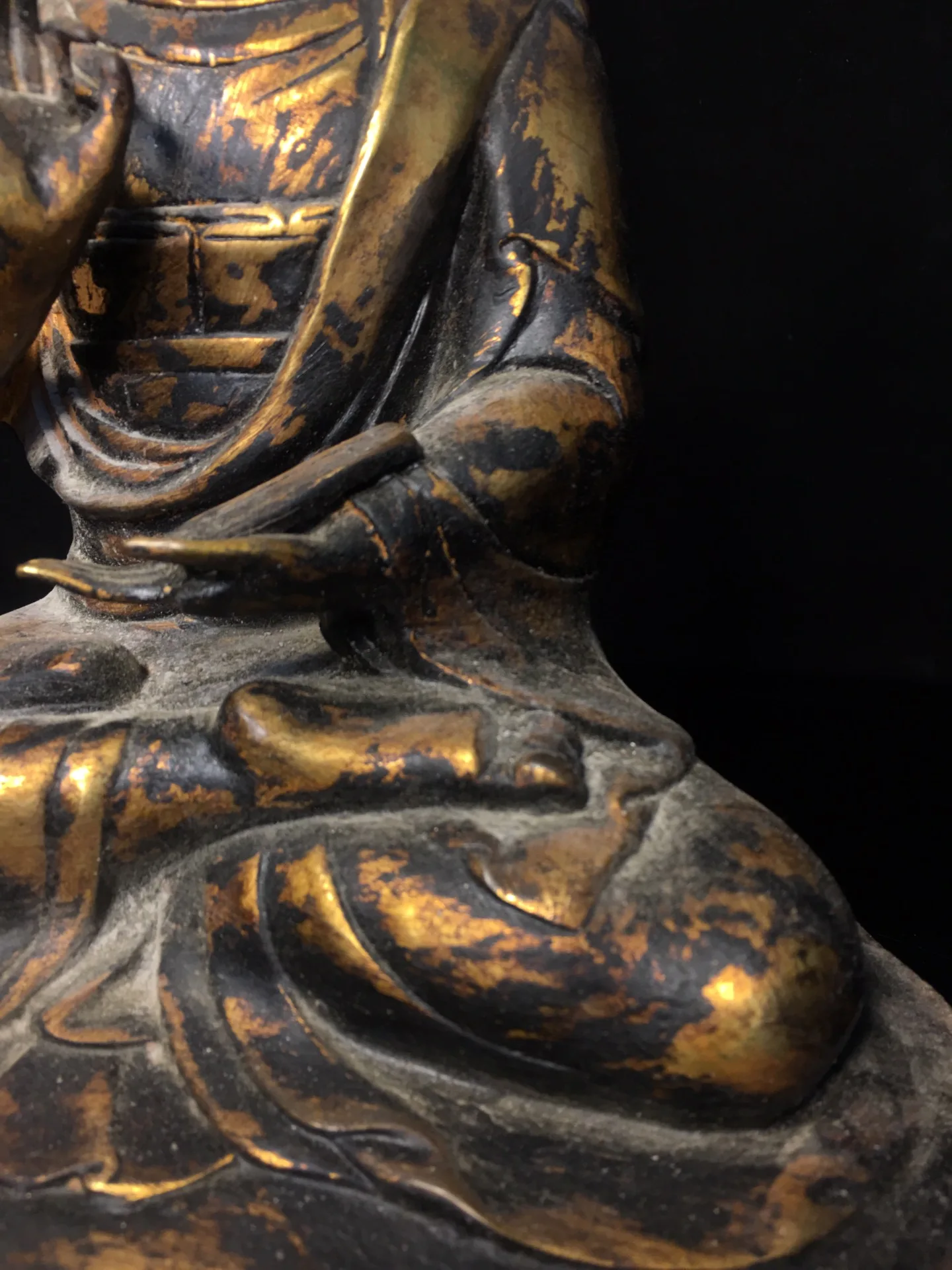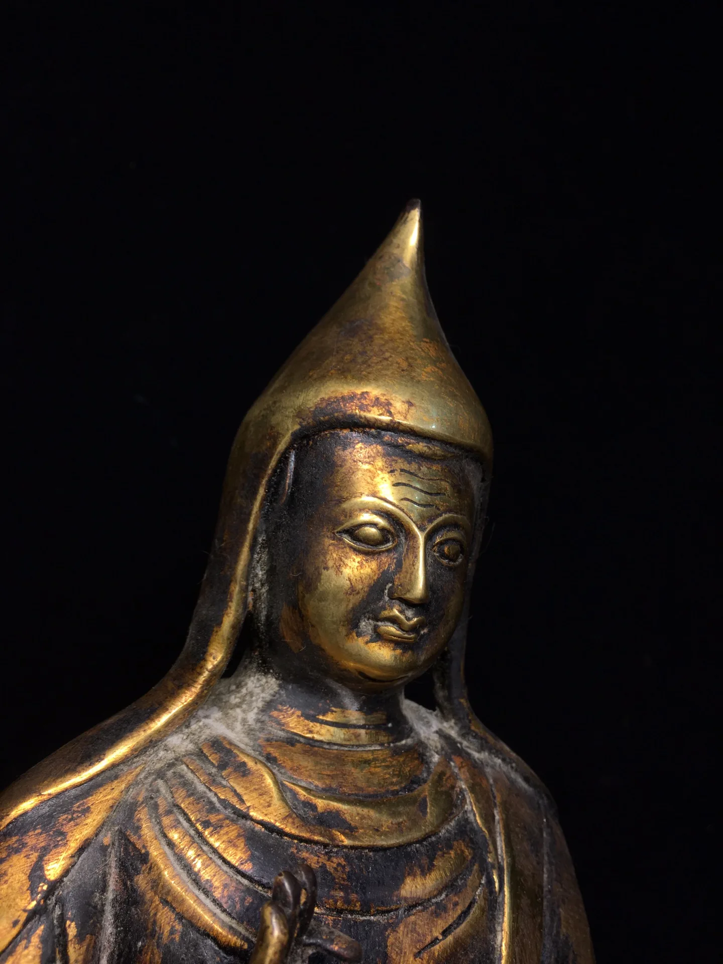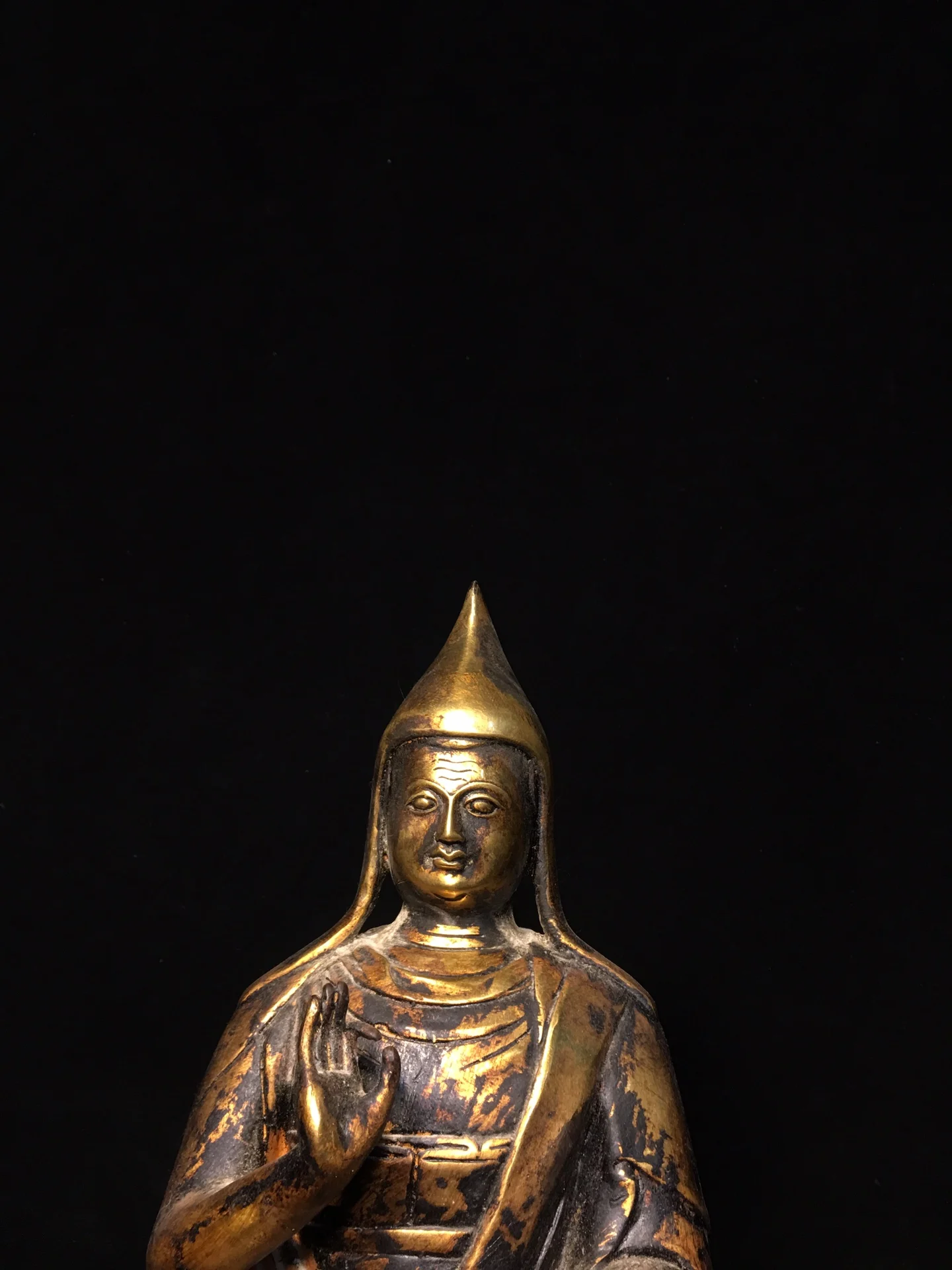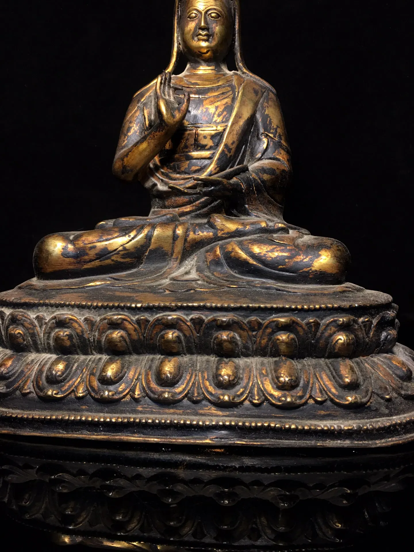 14"Tibet Temple Collection Old Bronze Cinnabar Mud gold Tsongkhapa Double Lotus Terrace Sitting Buddha Worship Hall