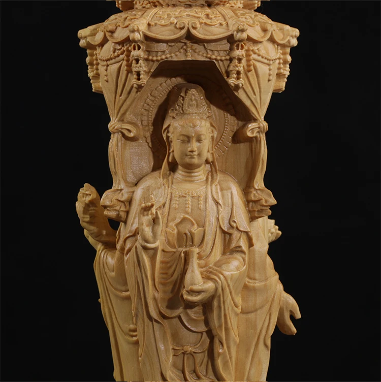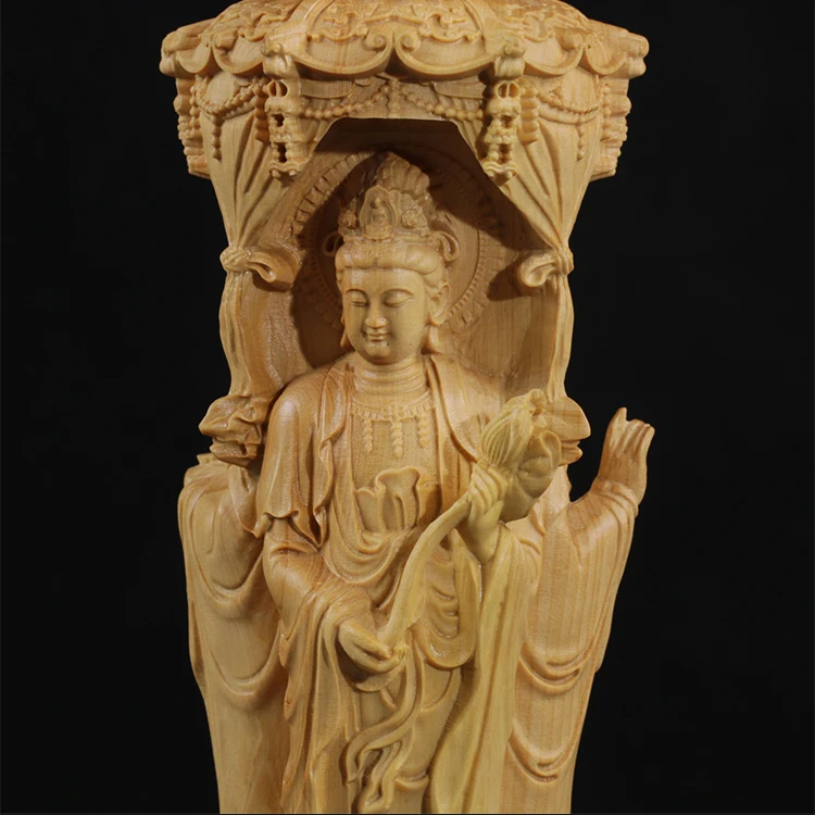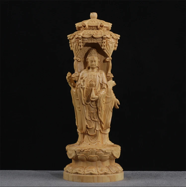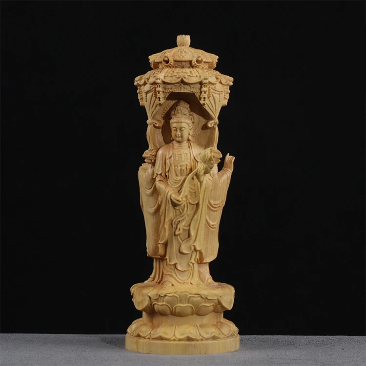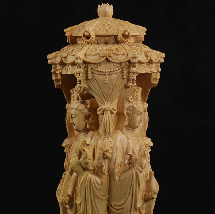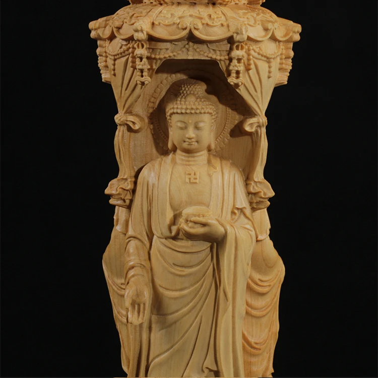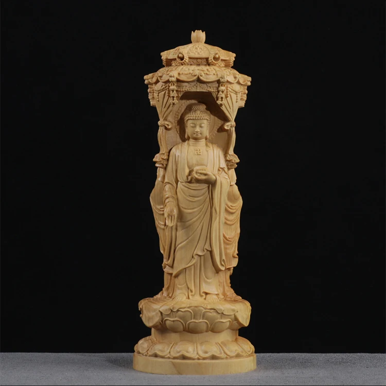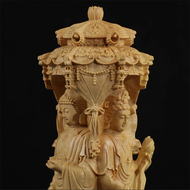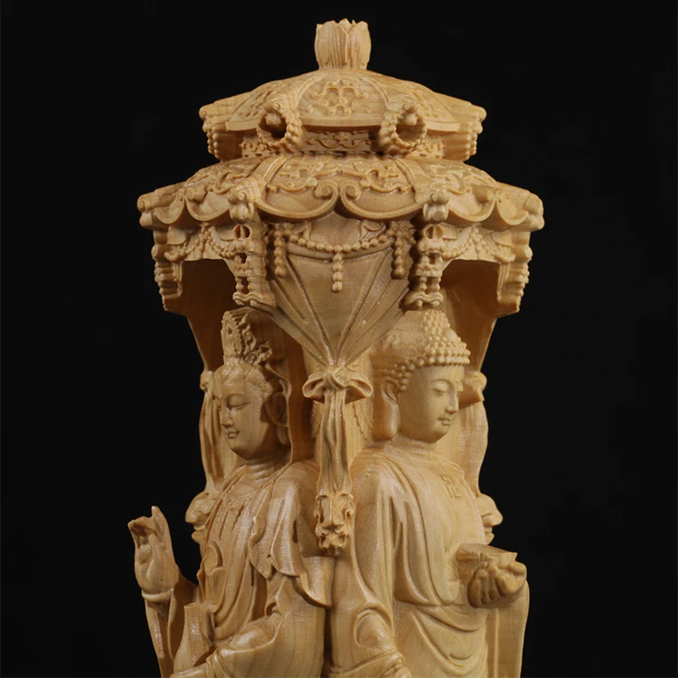 15/20cm Western Three Buddha Sculptures Wood Statues Chinese Style Folk Statue Hand Carved Sculpture Miniature Home Decor