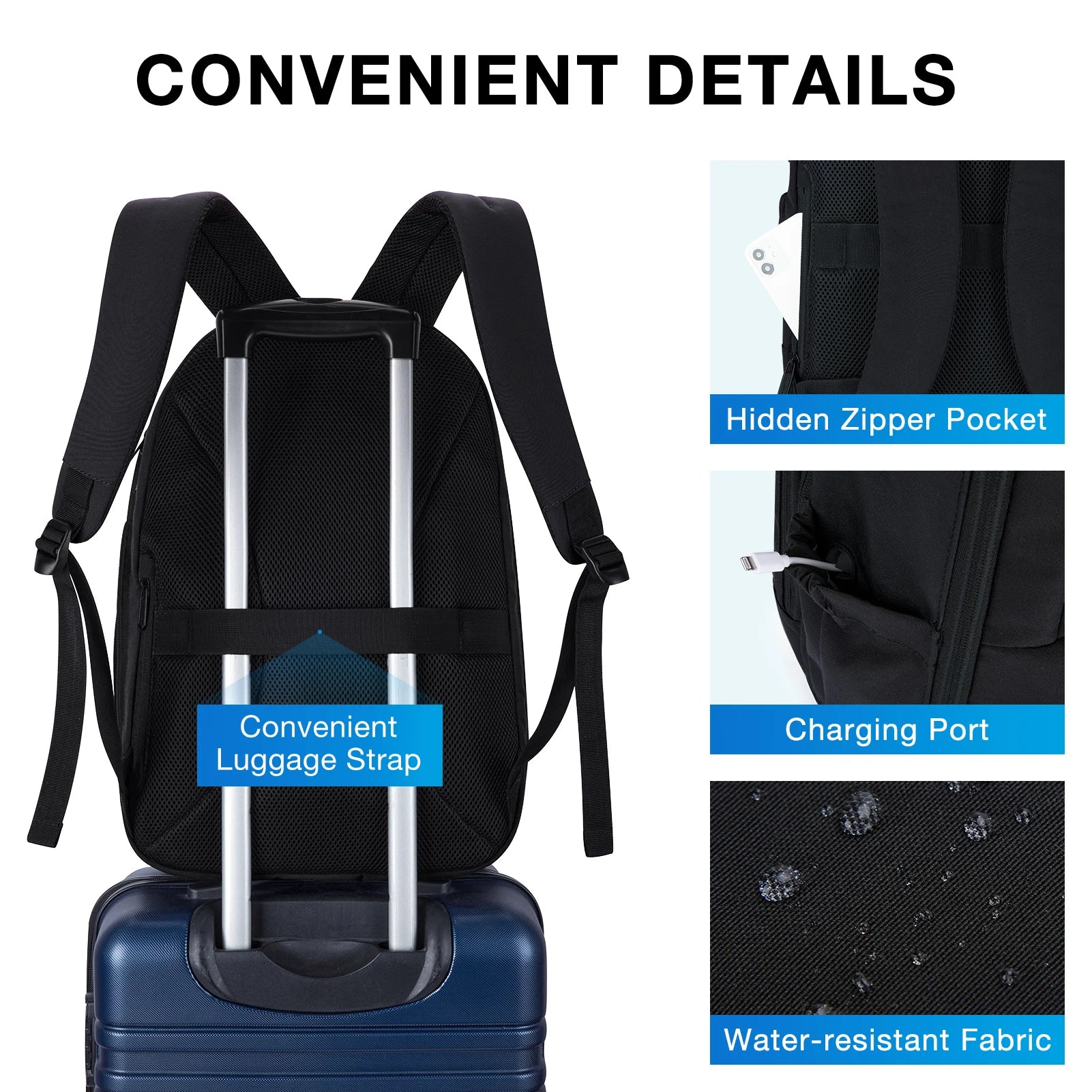 CHARGING PORT DESIGN: Charging port is convenient to charge your cell phone by the connected power bank offering a more easier way to charge your phone while walking or cycling with backpack for men and women. This design is also washable. (POWER BANK IS NOT INCLUDED).