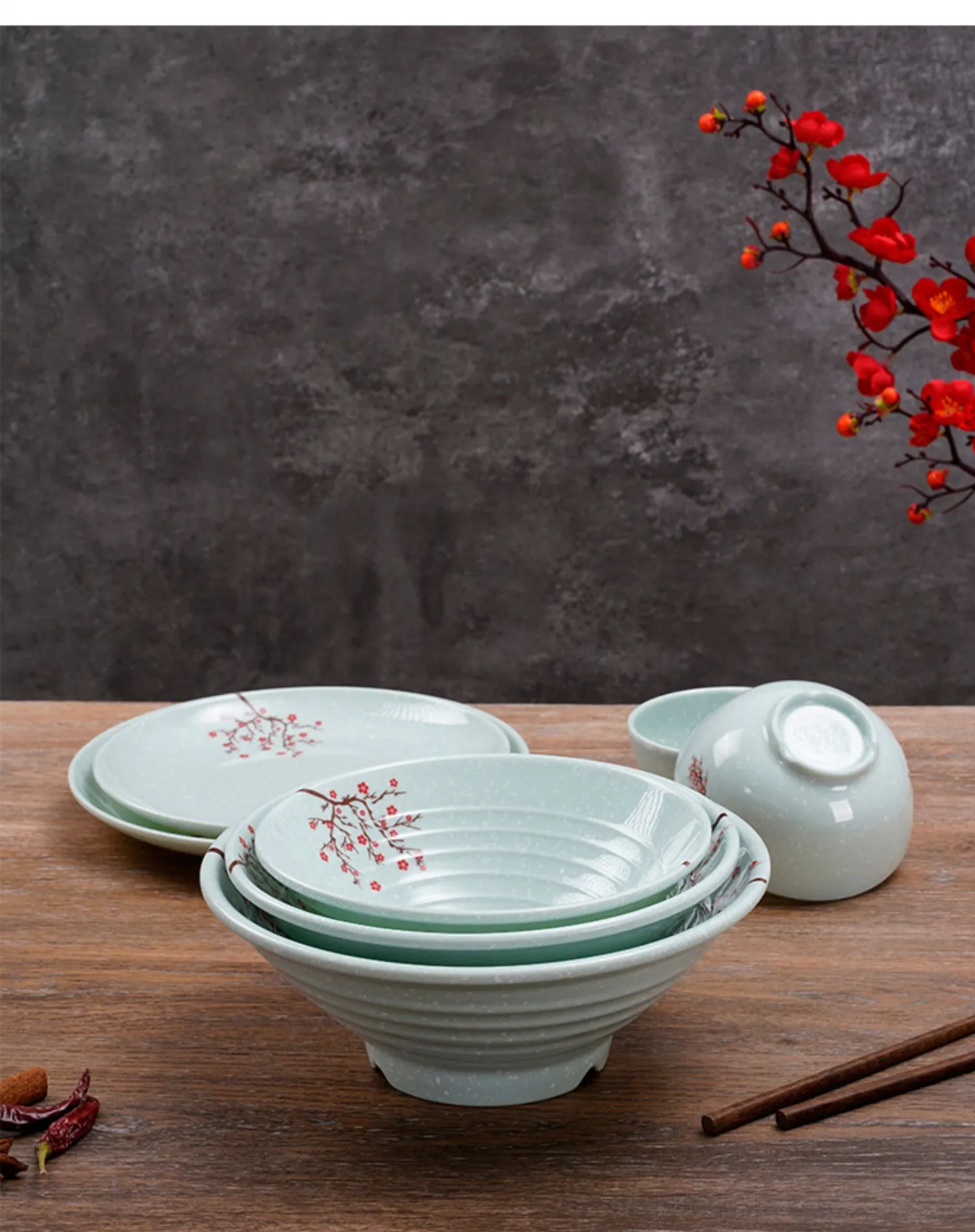 1pc Chinese Not Easily Broken Plastic Dinner Plates Household Melamine Tableware Dishes Plate Ramen Bowl Kitchen Accessories