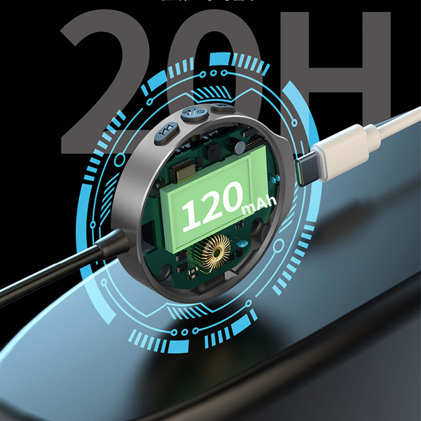 Specifications: Working voltage: 5V Bluetooth version: v5.3 Bluetooth transmission distance: 5 metres Bluetooth microphone effective distance:0.5-2 metres Connection mode: AUX connection input, output Battery capacity:120 mAh Function: transmit/receive/talk etc
