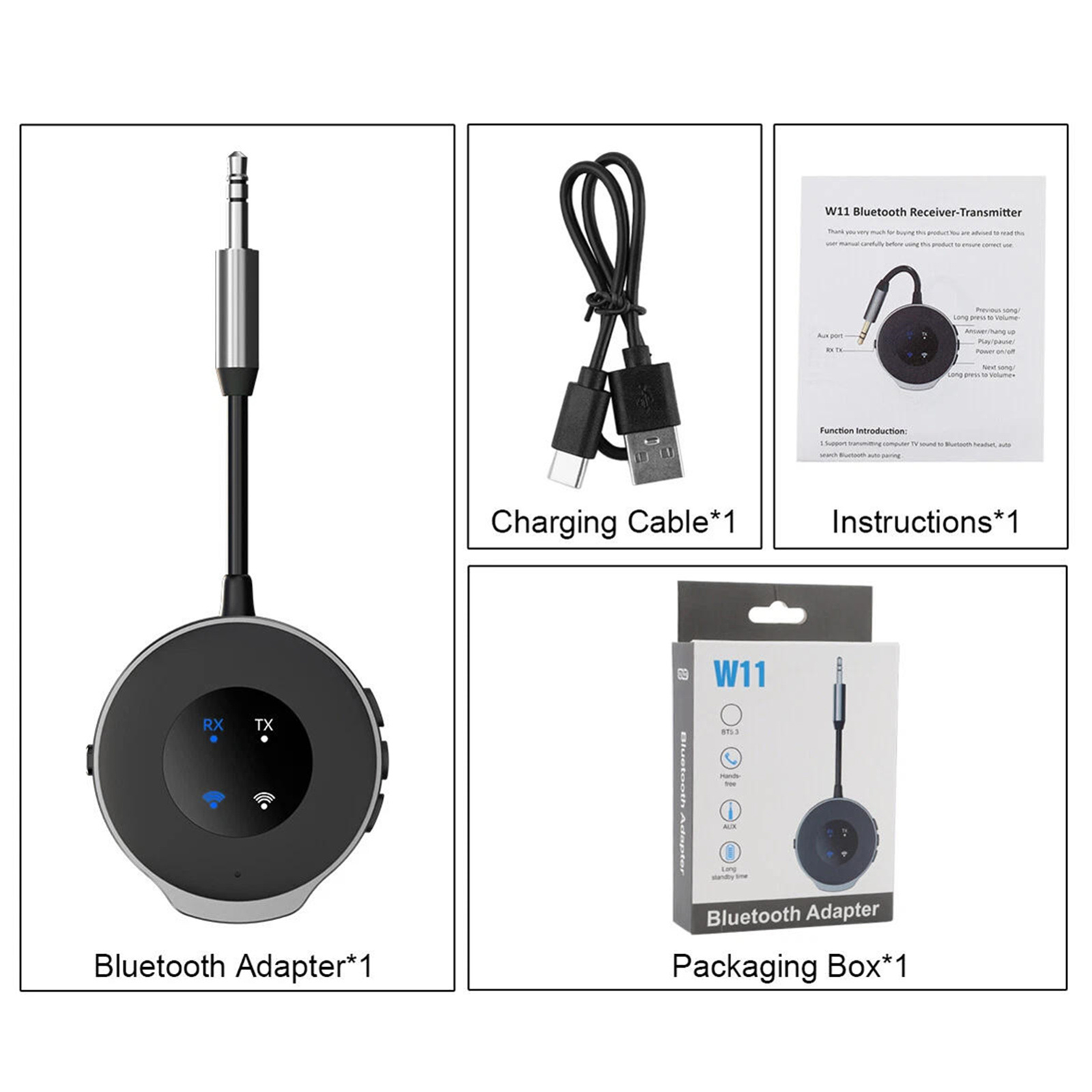 Package includes: 1* Bluetooth adapter 1* Charging cable
