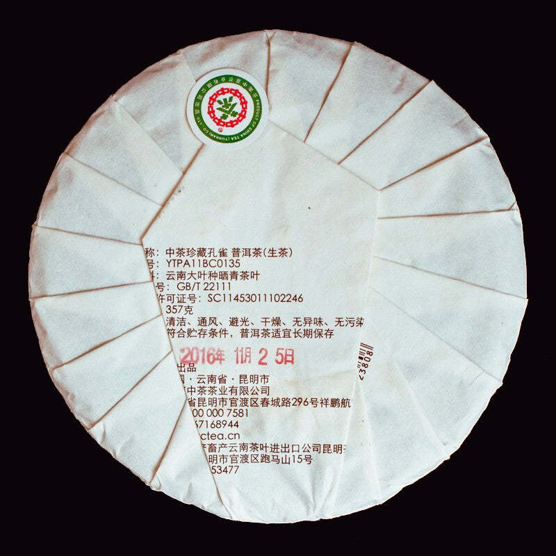 2016 Chinatea OLD TREE Peacock Raw Pu'er TEA CAKE