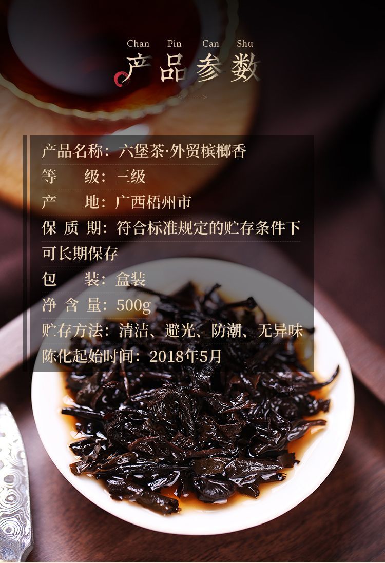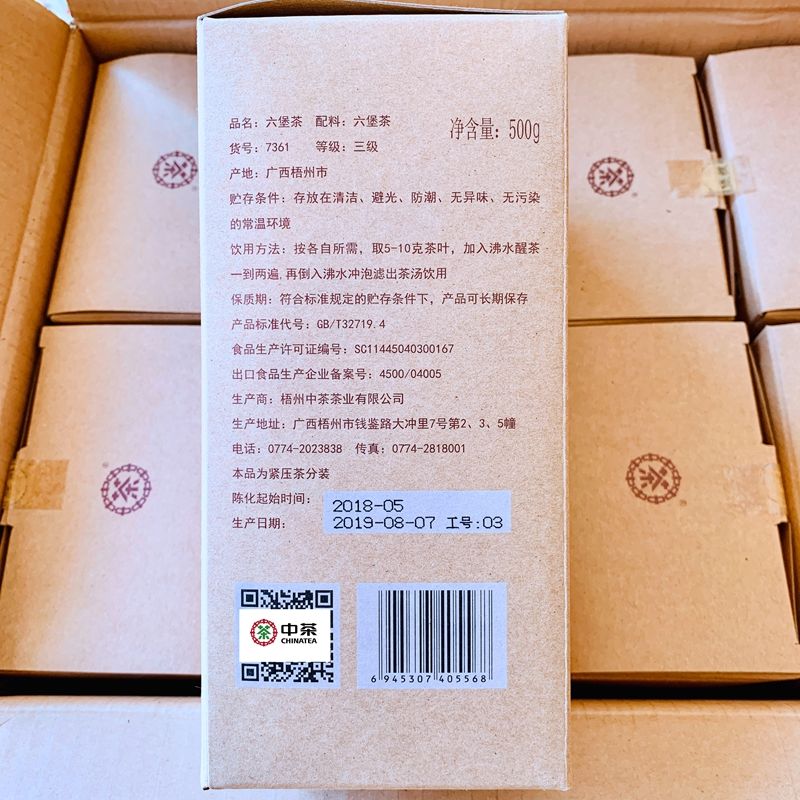2018/2019 Betelnut Flavored CHINATEA Liu Pao Tea 7361 Foreign Trade Liu Bao 500g