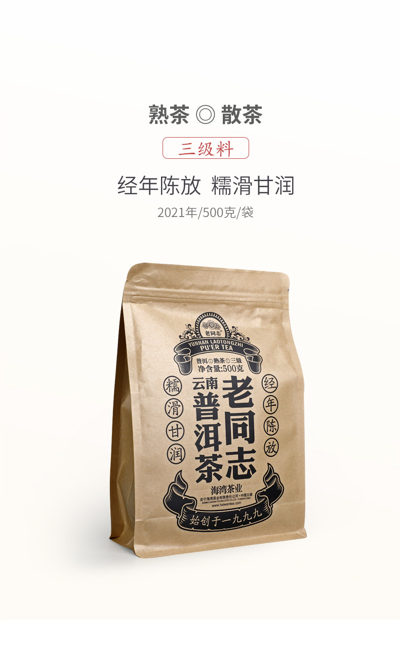 2021 Lao Tong Zhi Third Grade Ripe Puer Loose Tea Haiwan Shou Puerh Tea 500g