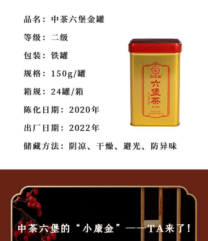 2022 CHINATEA COFCO Zhong Cha Liubao Tea Liu Pao Tea Dark Tea 150g Golden Jar