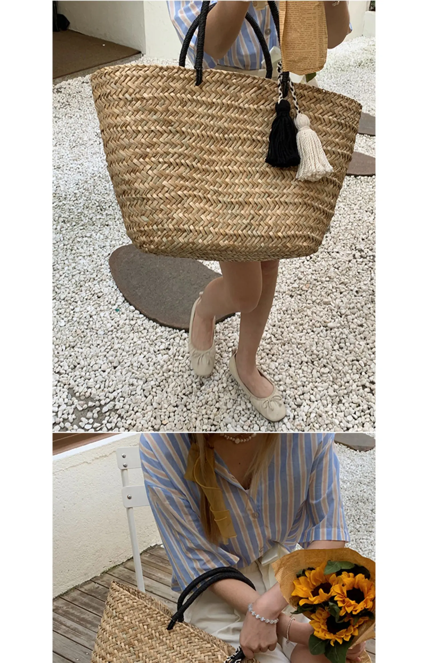 2022 New Summer Women Straw Handbag Female Travel Bohemia Shopper Purses Ladies Casual Large Capacity Weave Wicker Rattan Bag