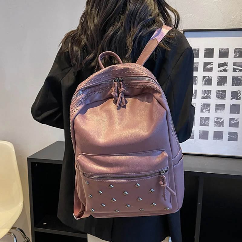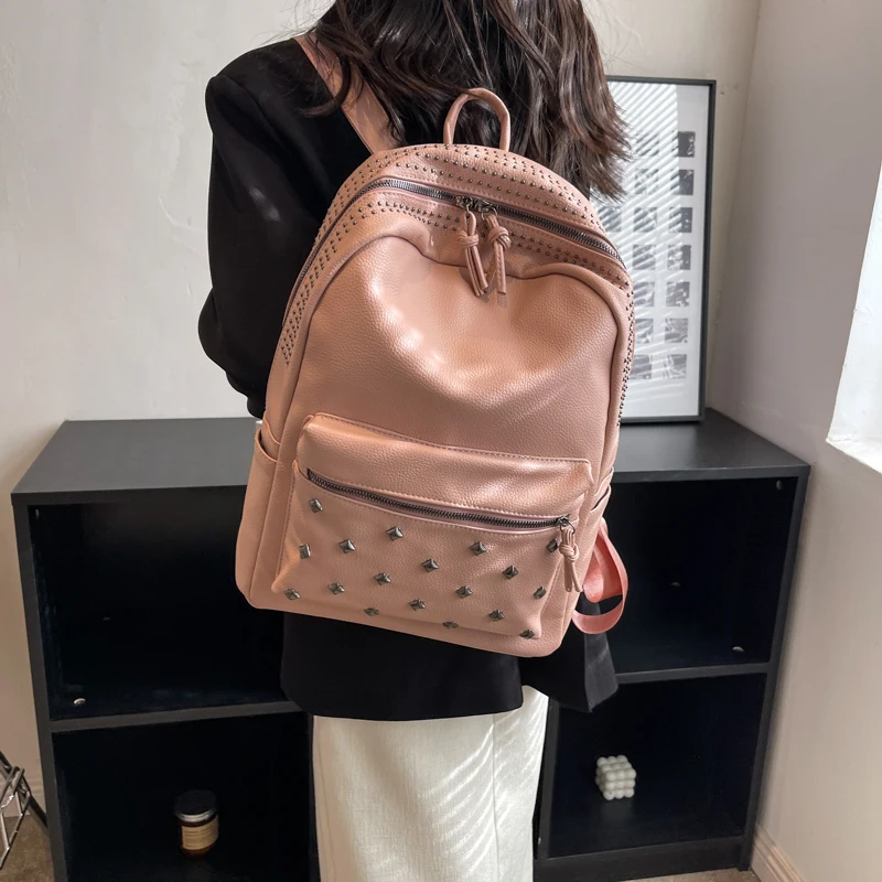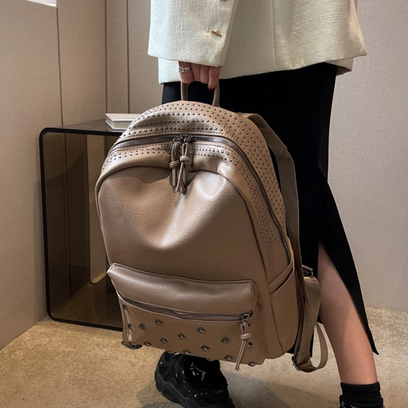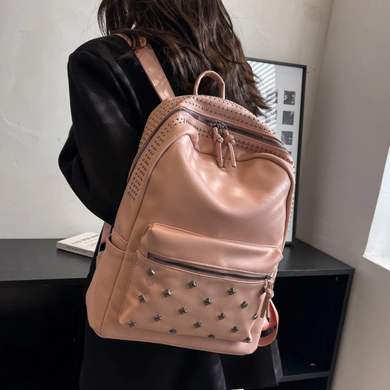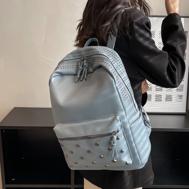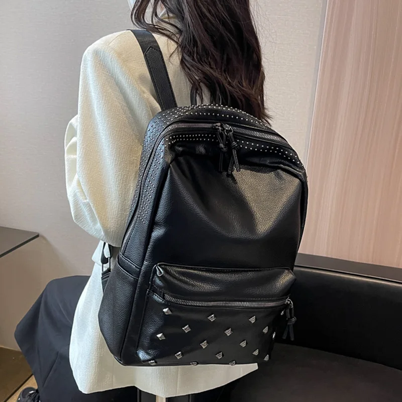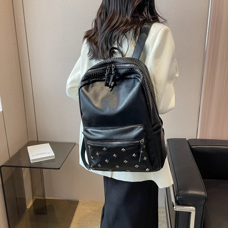 2023 New Rock Style Women Backpack Big Capacity Fashion Bags for Girls High Quality Rivet Design Bagpack Mochila Feminina