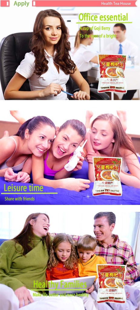 Goji has very much good functions to our body. It nourishes the liver and brightens the eyes, tonifys kidney,enriches blood and calm nerves and etc.