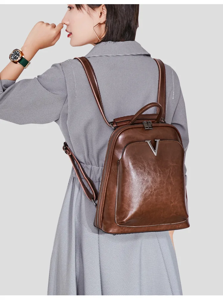 2024 New Genuine Leather Backpack For Women Fashion Cowhide Backpack Ladies Retro Shoulder Bag Luxury Girls Schoolbag