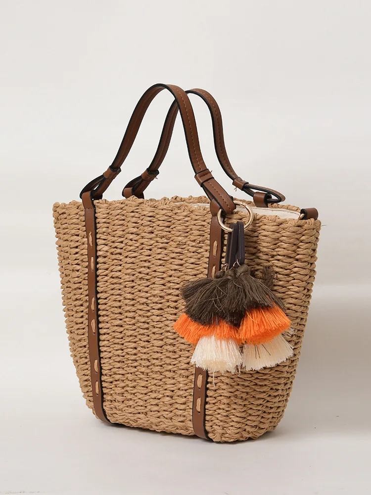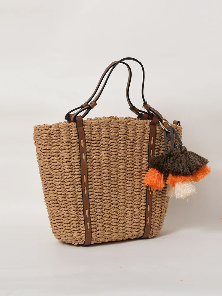 2024 Spring/Summer Grass Woven Shoulder Bag Tote Bag Large Capacity Handheld Woven Bag Holiday Style