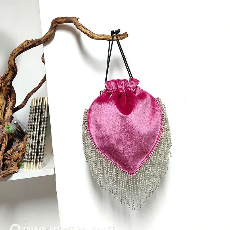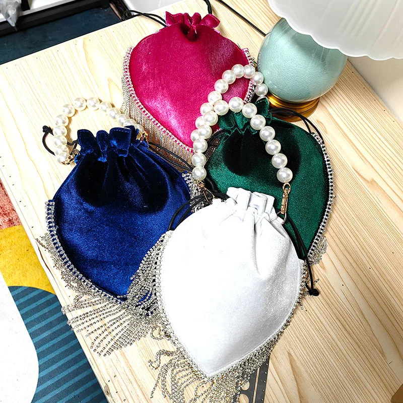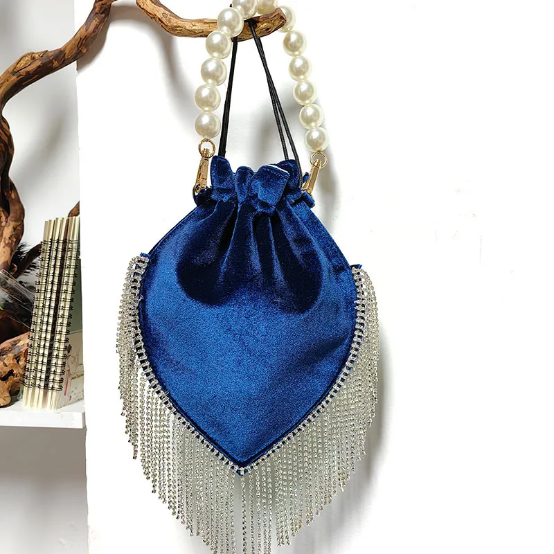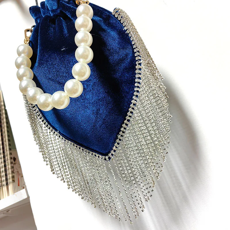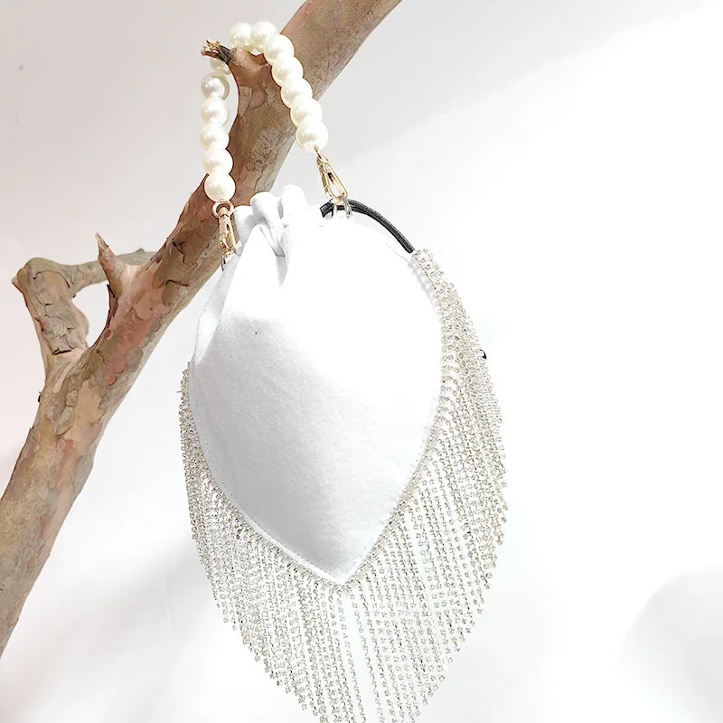 2024 Thai Trend French tassel rhinestone bag Satin drawstring Pearl catwalk fashion bag one shoulder hand