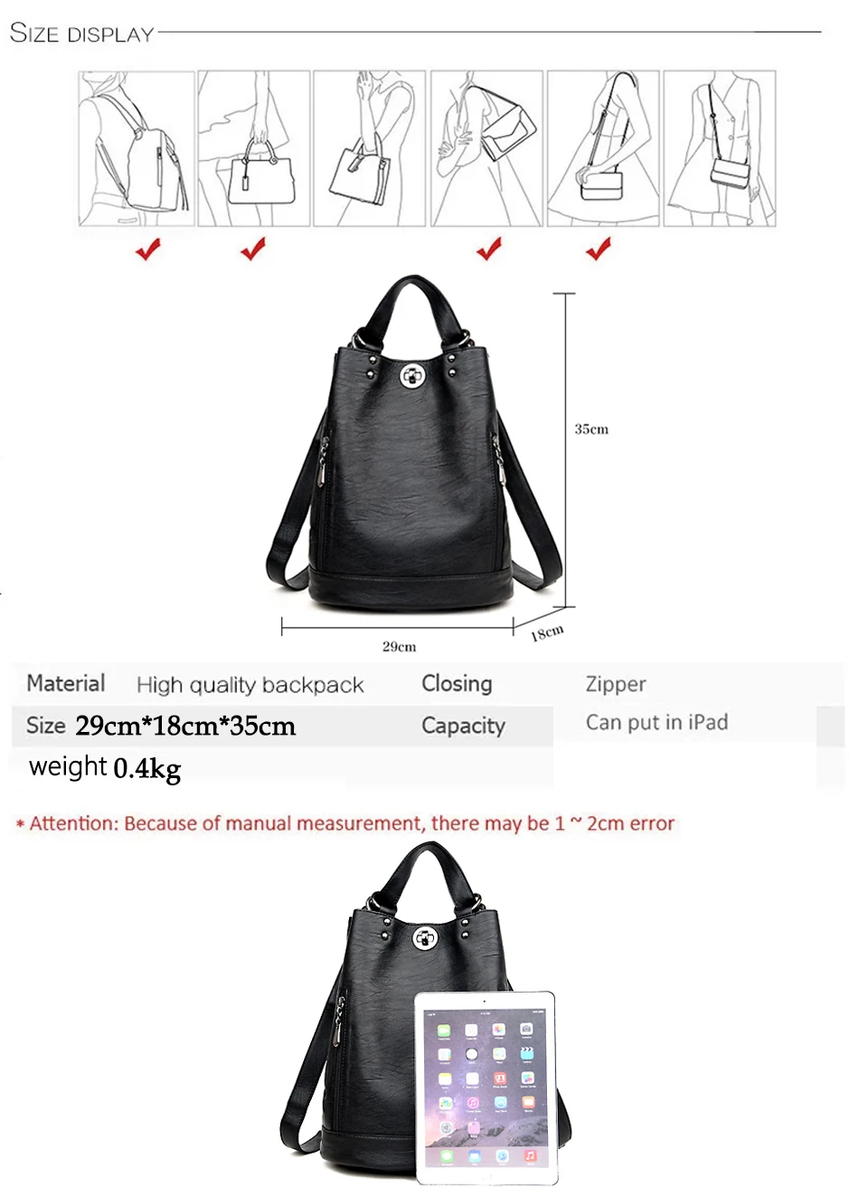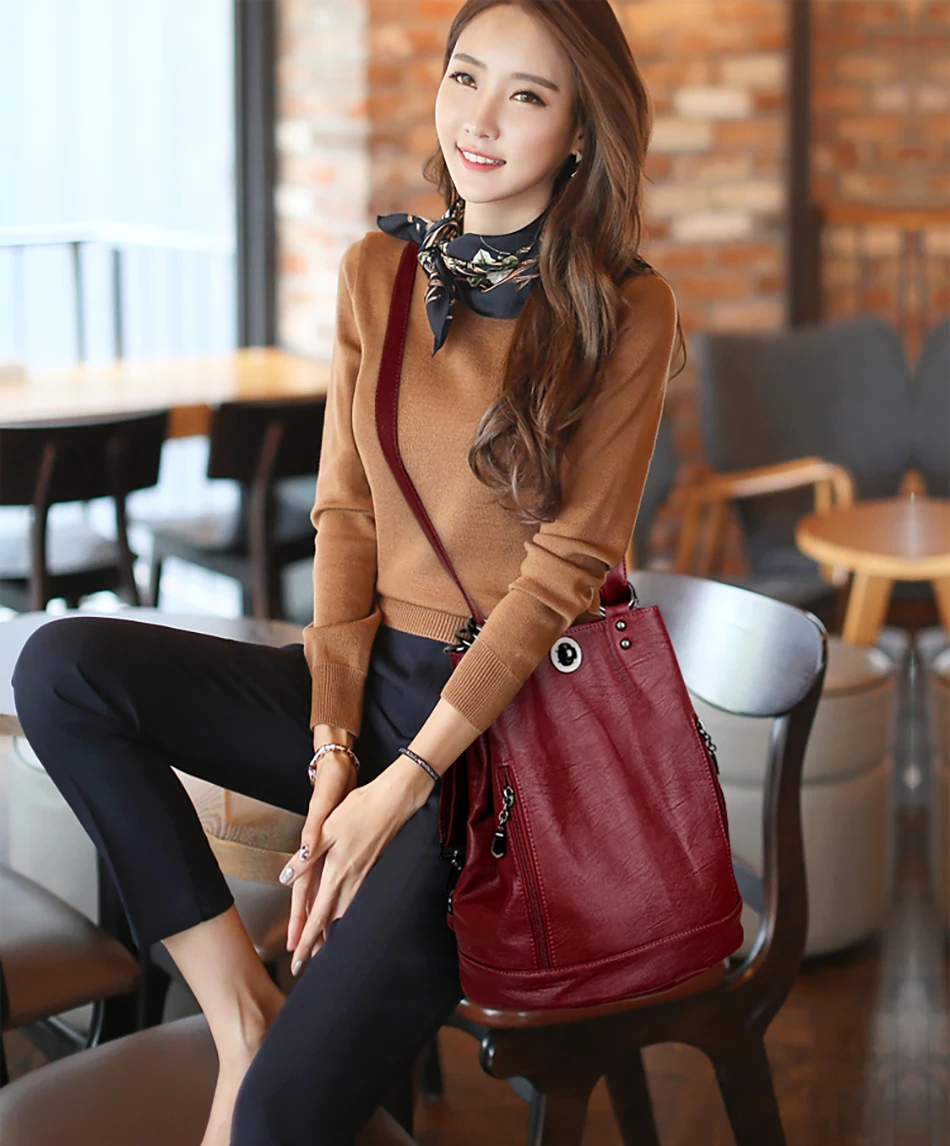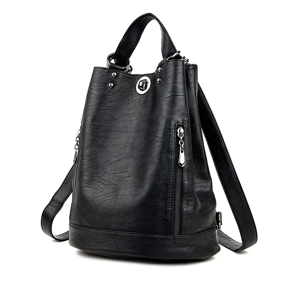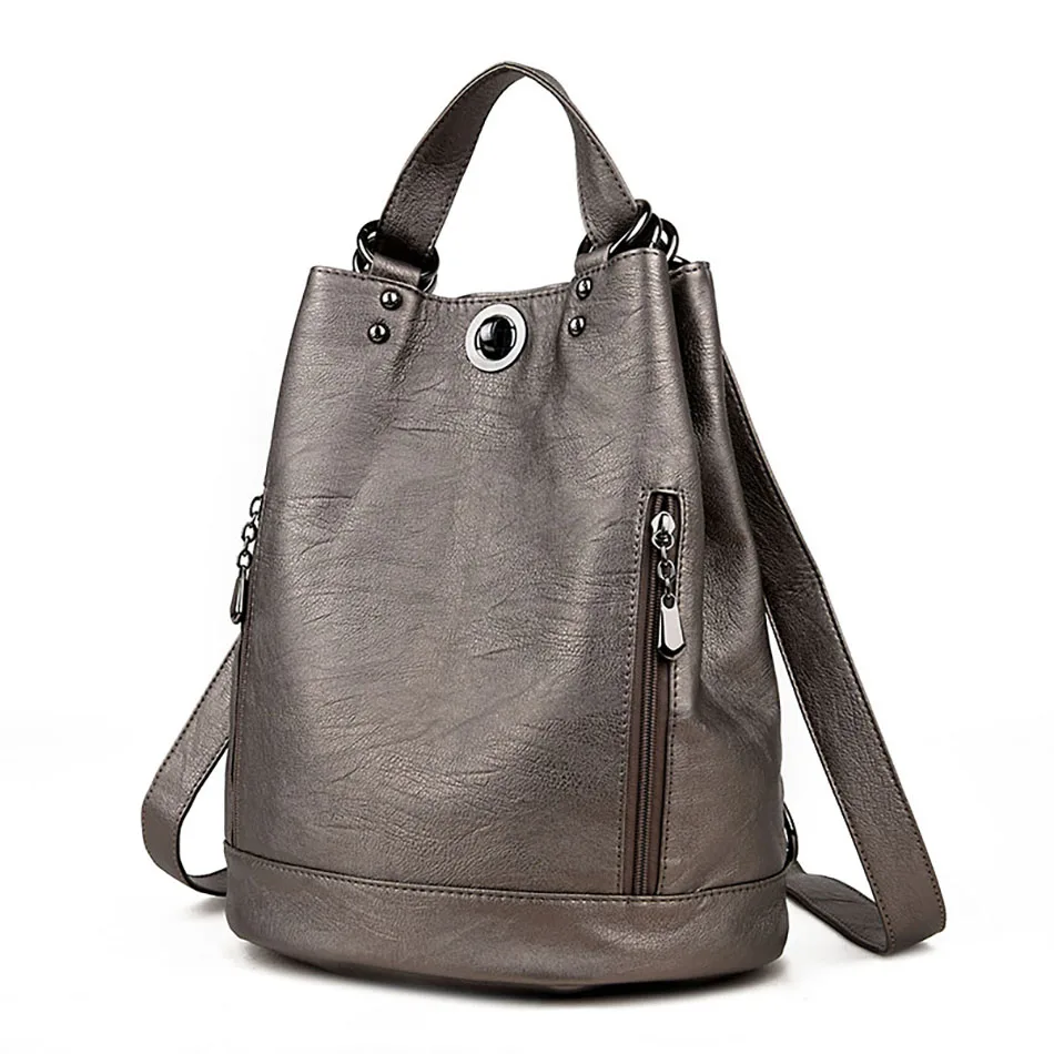 2024 Women Leather Backpacks Multifunction Women Vintage Shoulder Bag Ladies Rucksack Large Capacity Travel Bag Sac A Dos Preppy