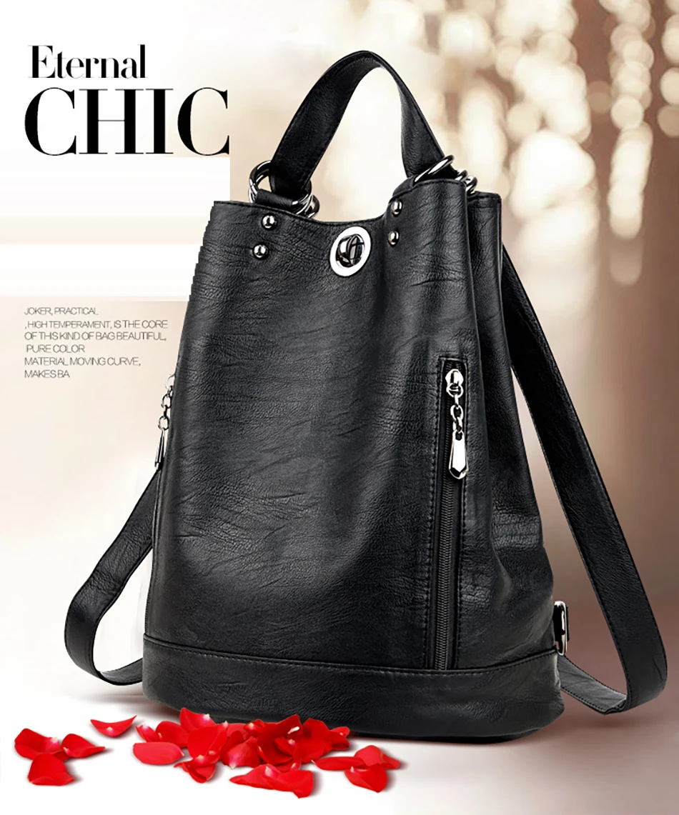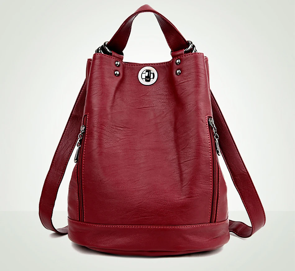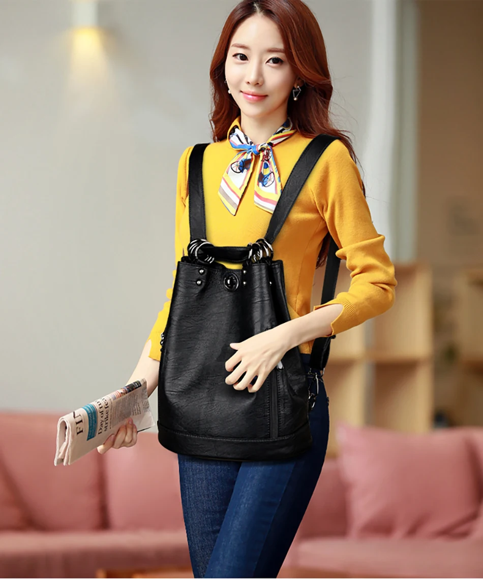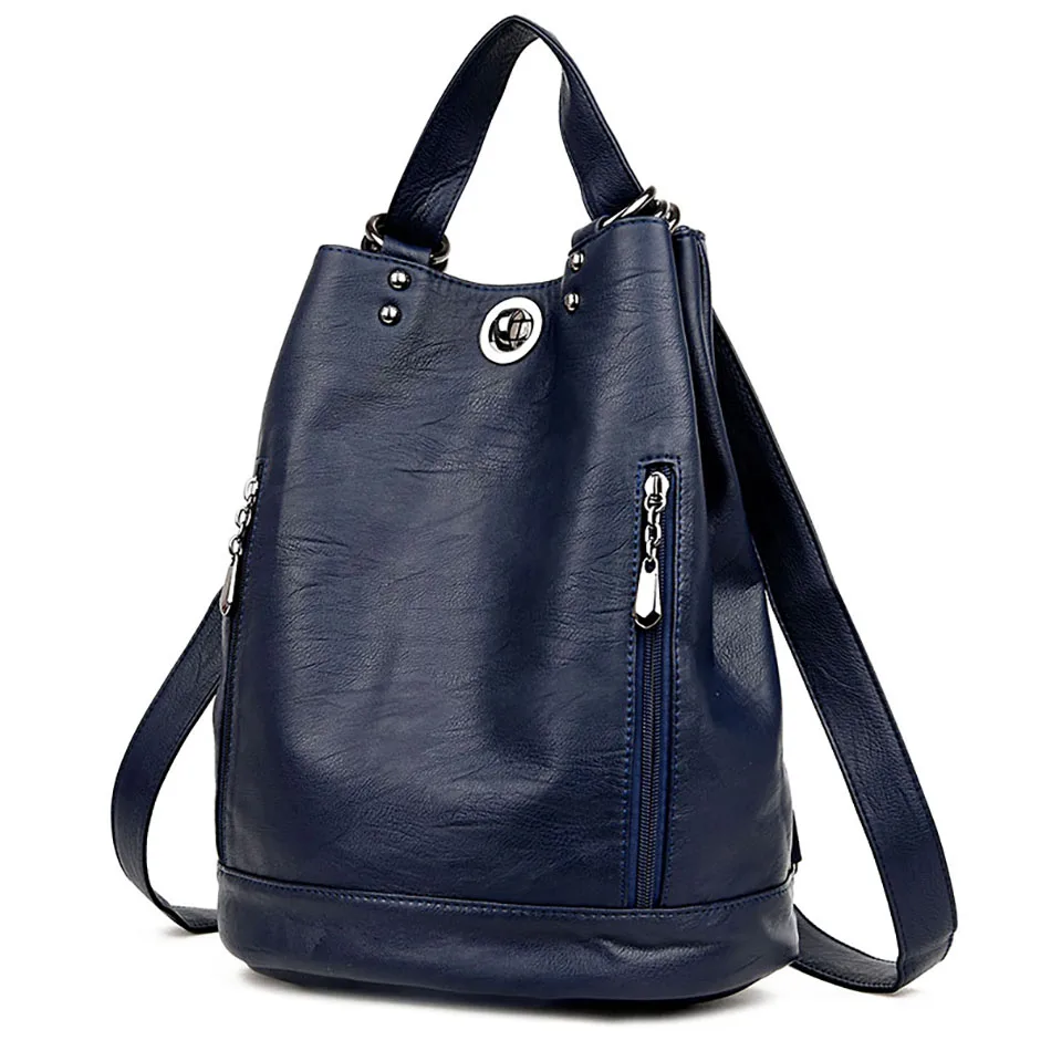 2024 Women Leather Backpacks Multifunction Women Vintage Shoulder Bag Ladies Rucksack Large Capacity Travel Bag Sac A Dos Preppy