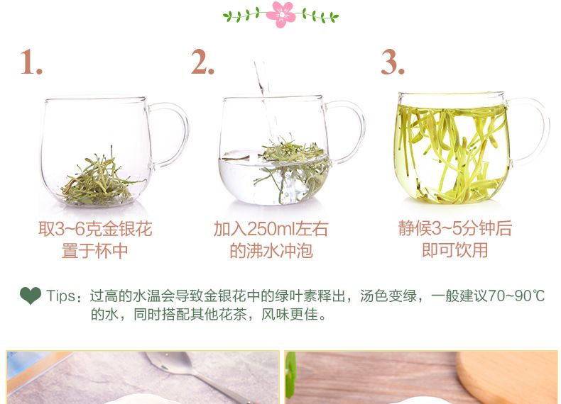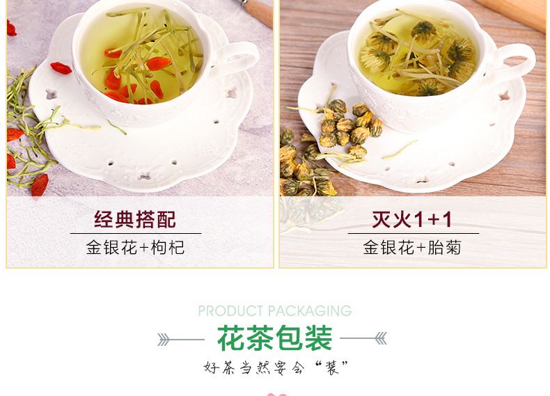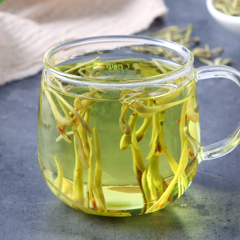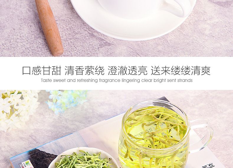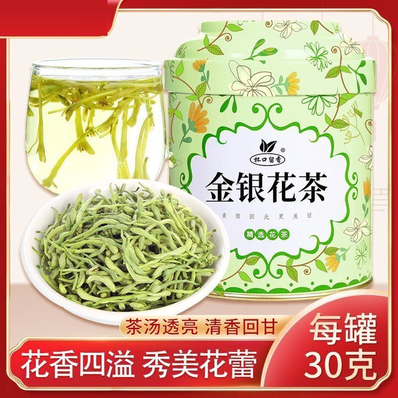 30g/jar of fragrant gold and silver flower tea at the mouth of the cup