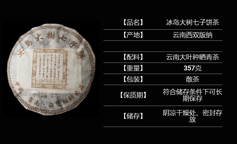 357g Yunnan Tea Icelandic Big Tree Seven Cakes Ancient Puerh Tea Ripe Cake Tea