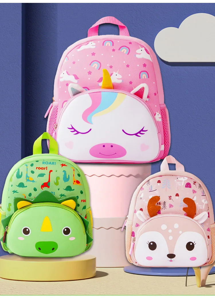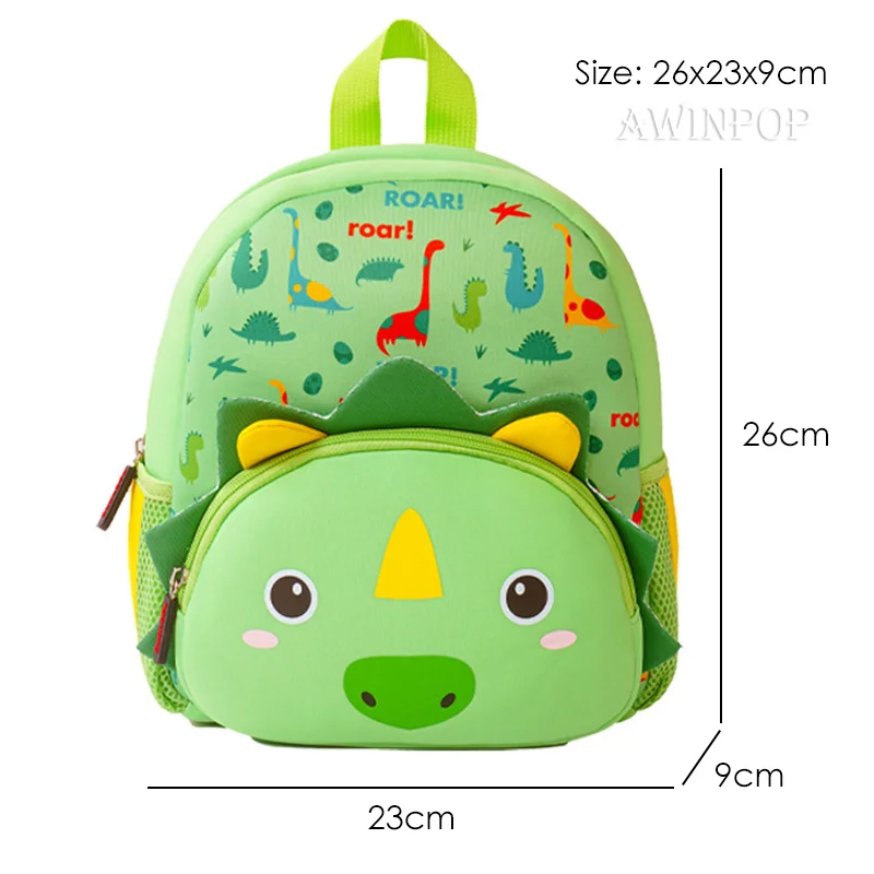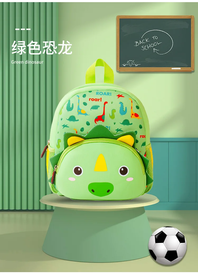 3D Green Dinosaur Children School Backpacks for Boys Waterproof Cartoon Animals Kindergarten Kids School Bags for 2-5 Years Old