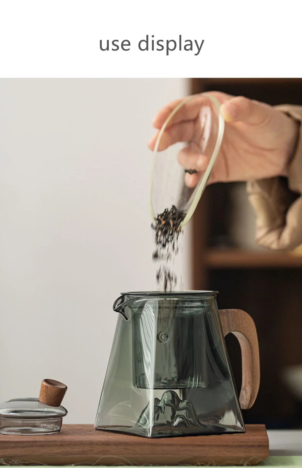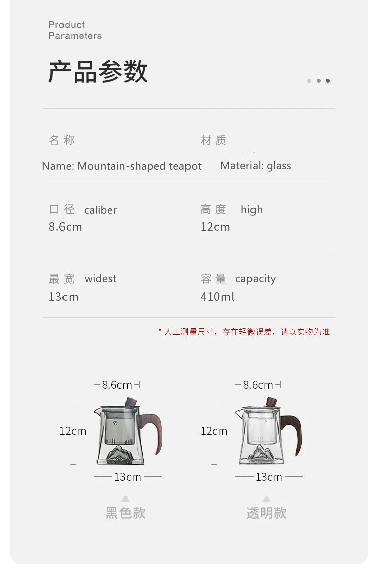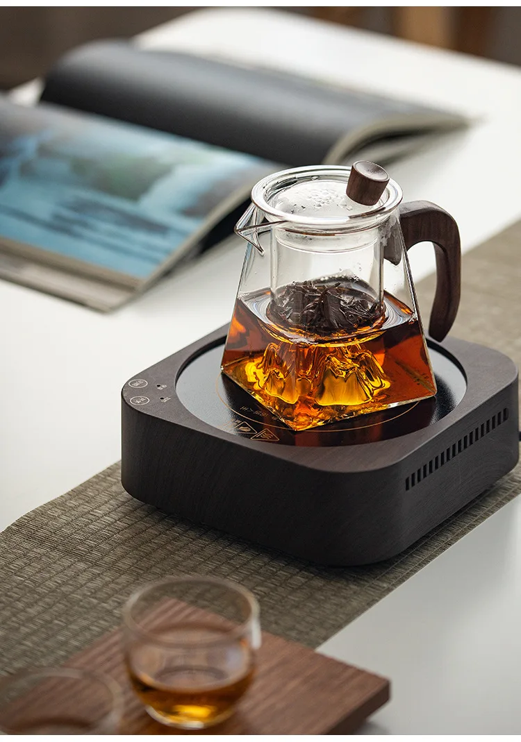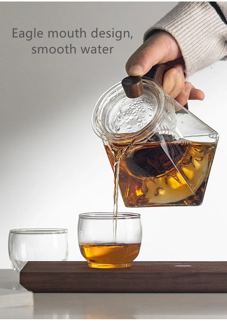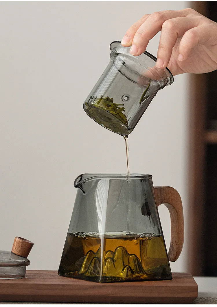 3D Mountains Glass Teapot with Tea Infuser Heat Resistant Glass Tea Pot Clear Kettle Wooden Handle Chinese Kung Fu Tea Sets