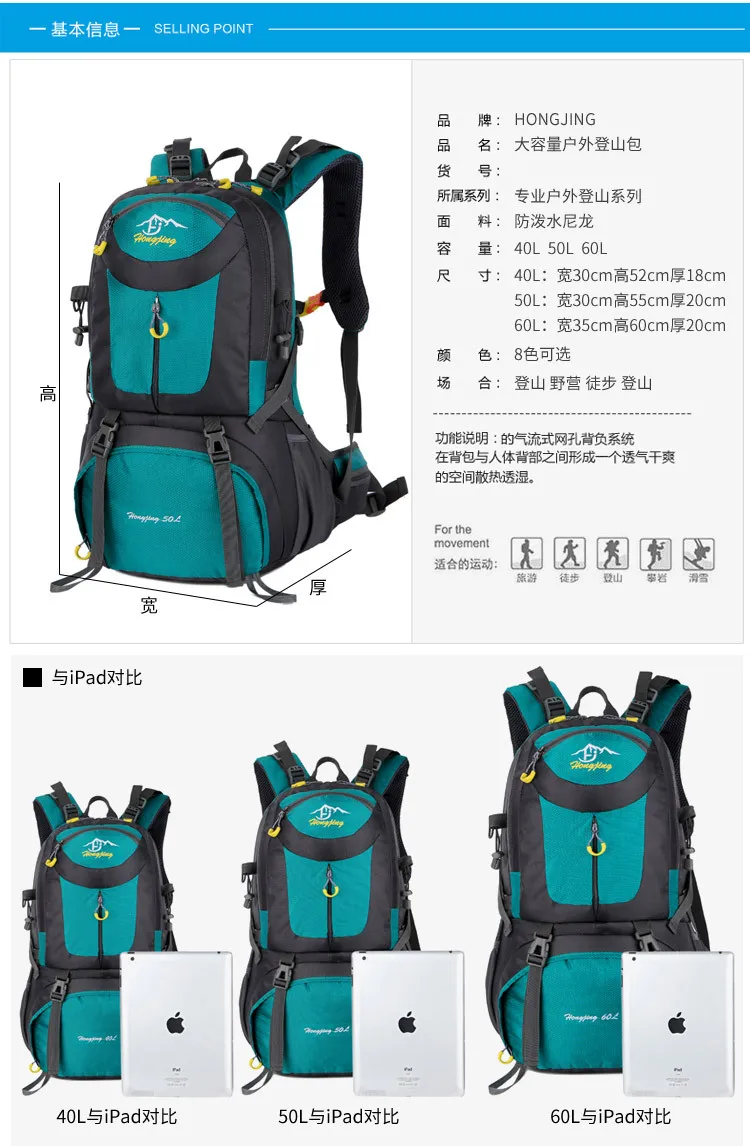 40L/50L/60L Camping Backpack Women Men Outdoor Travel Bag Climbing Rucksack Large Hiking Storage Pack Mountaineering Sports Bags