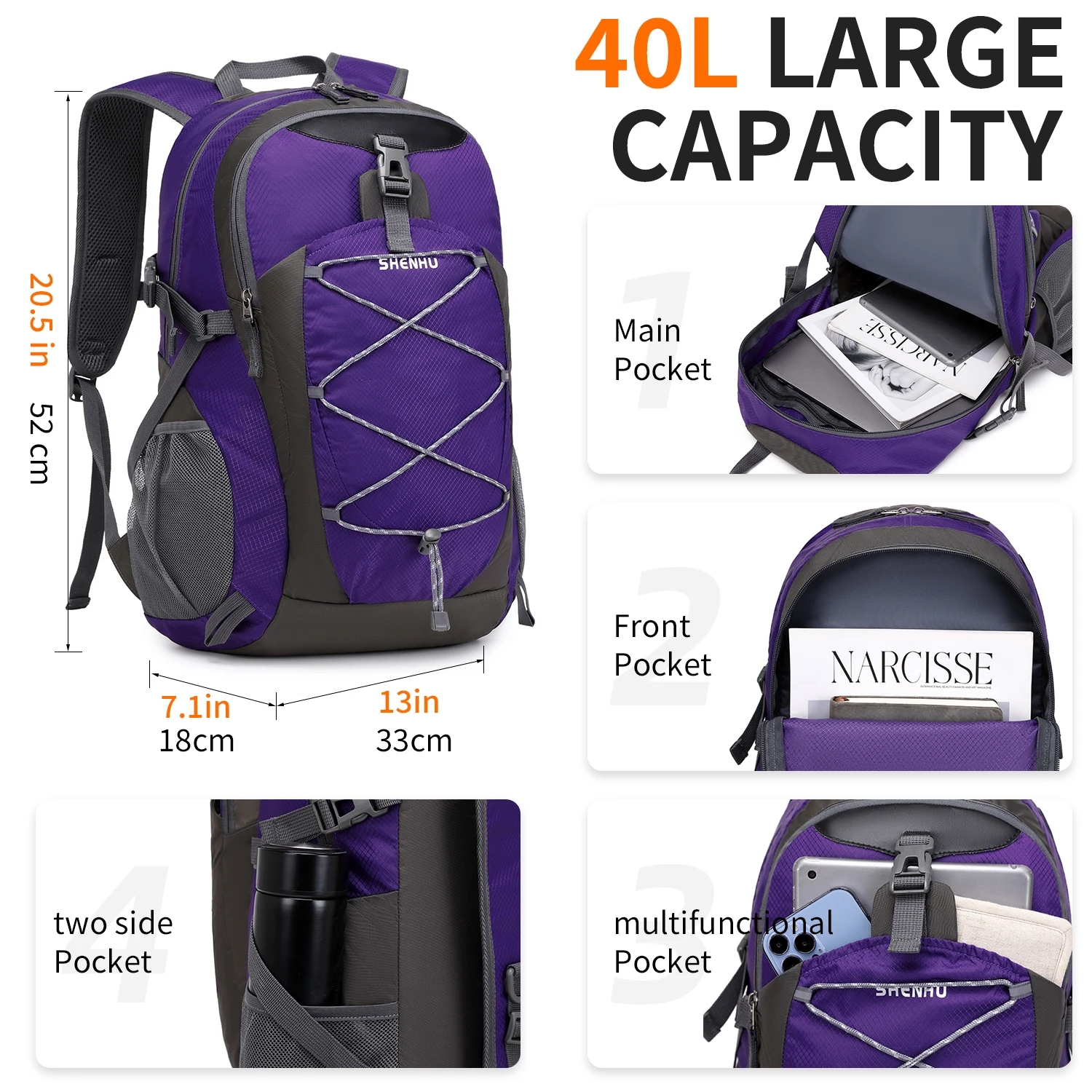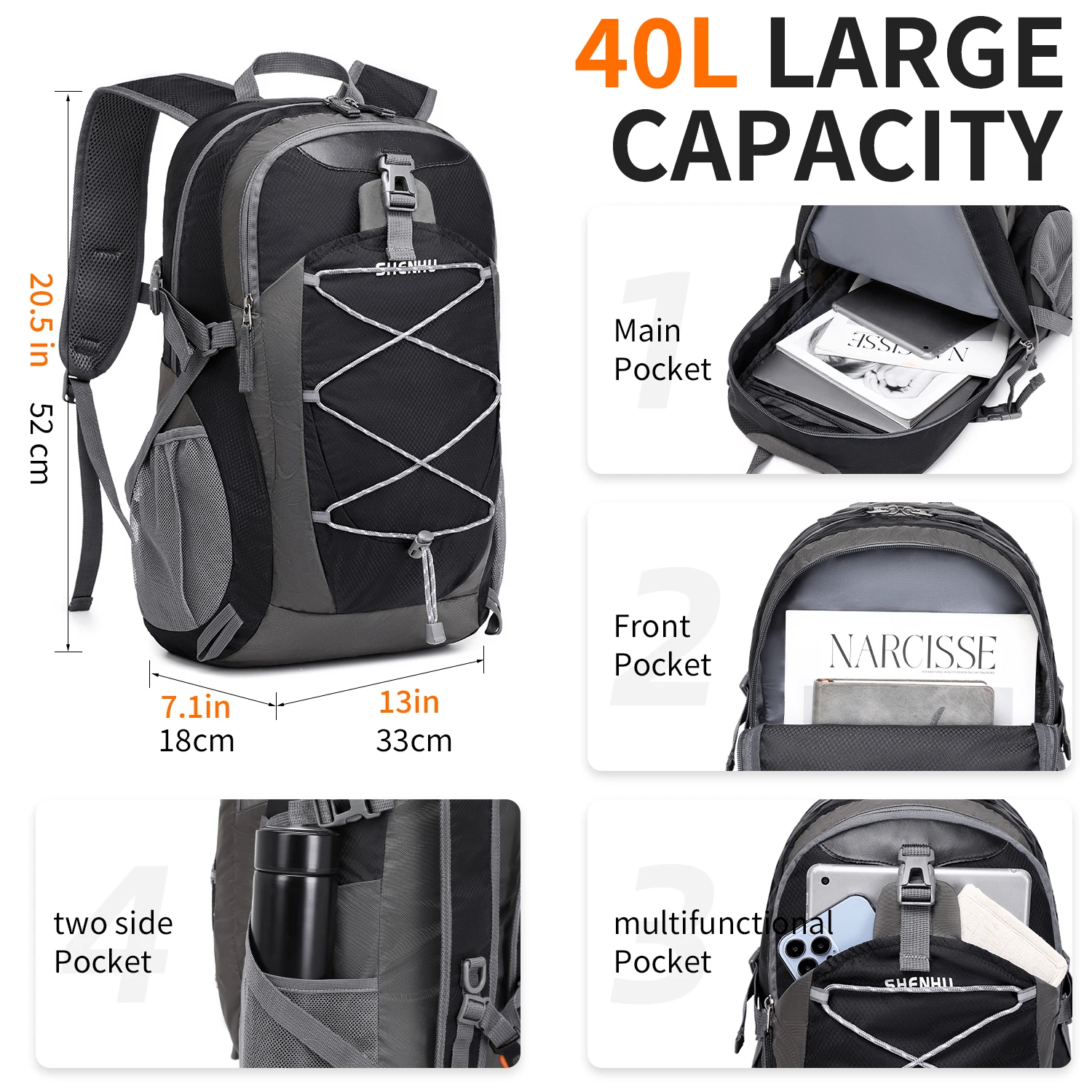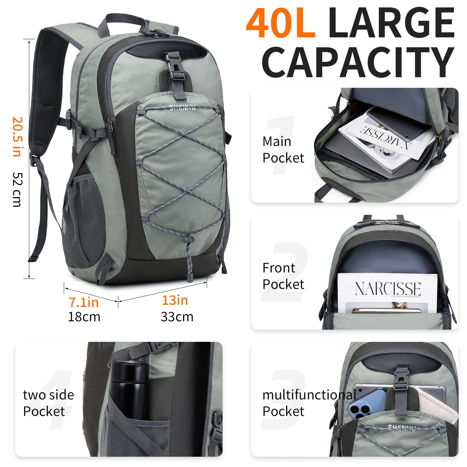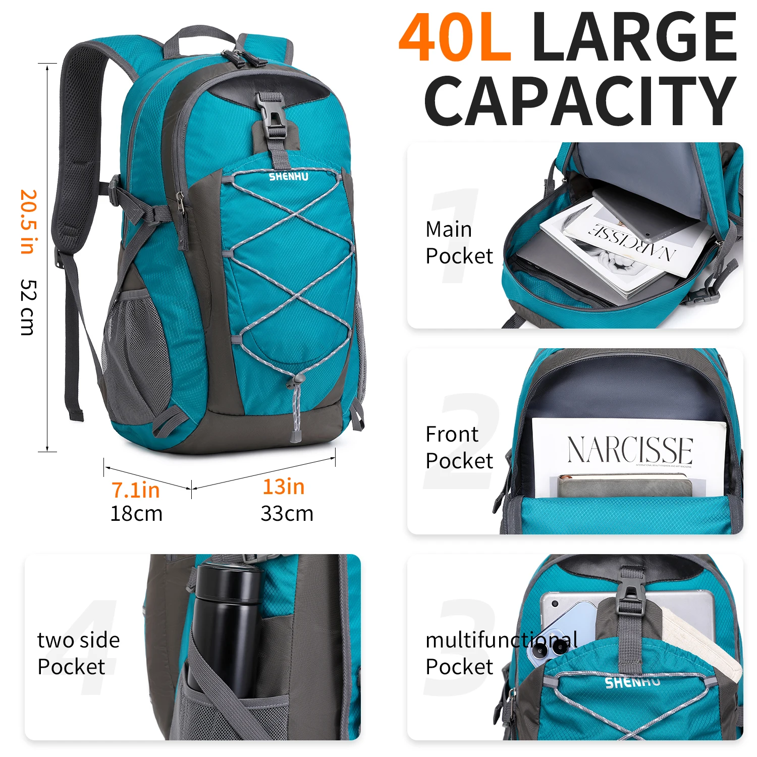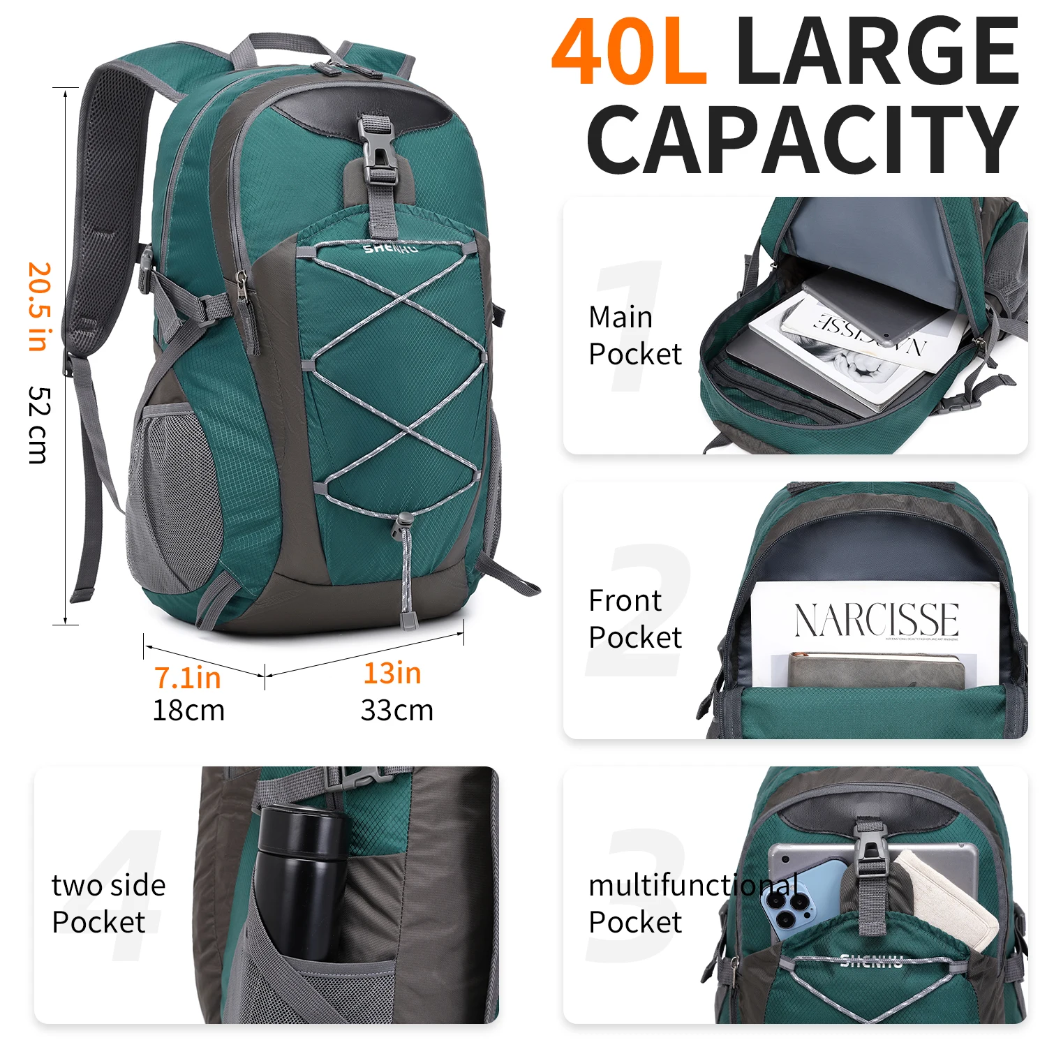 40L Hiking Backpack Lightweight Daypack Waterproof Travel Camping Backpack for Men Women Sport Packable