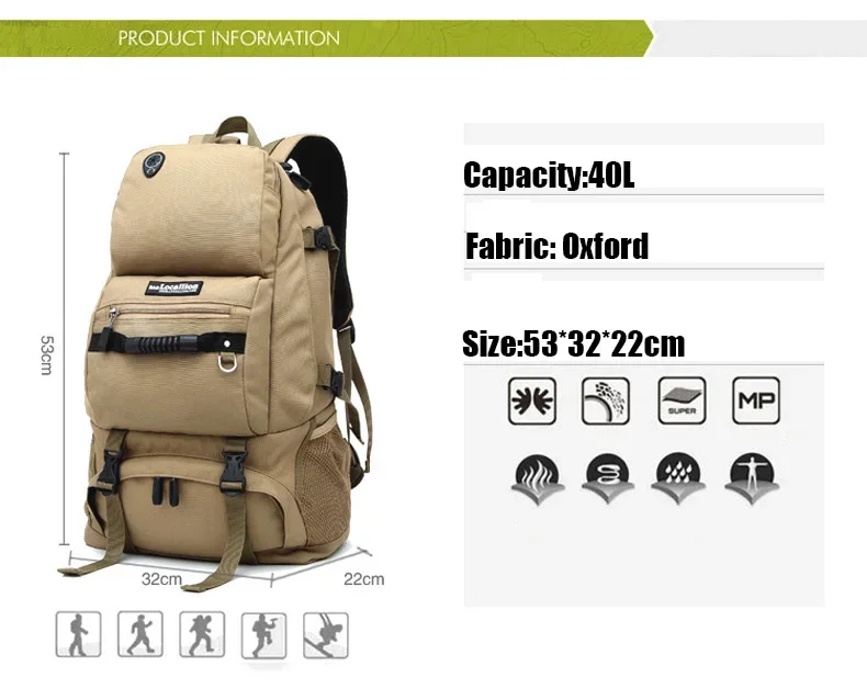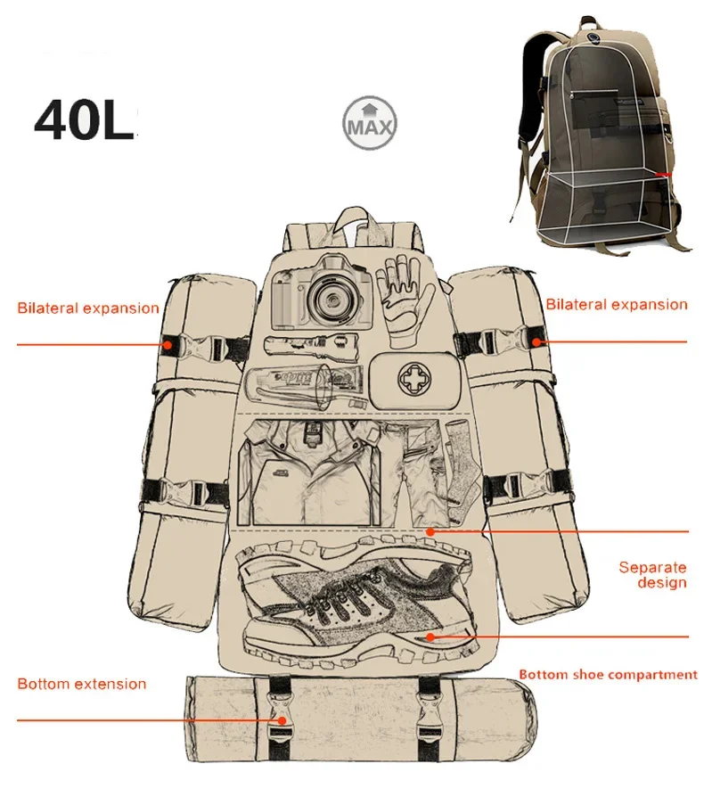 40L Outdoor Waterproof Hiking Backpack Mountaineering Bags Women Men Camping Travel Bag Sport Trekking Climbing Rucksack